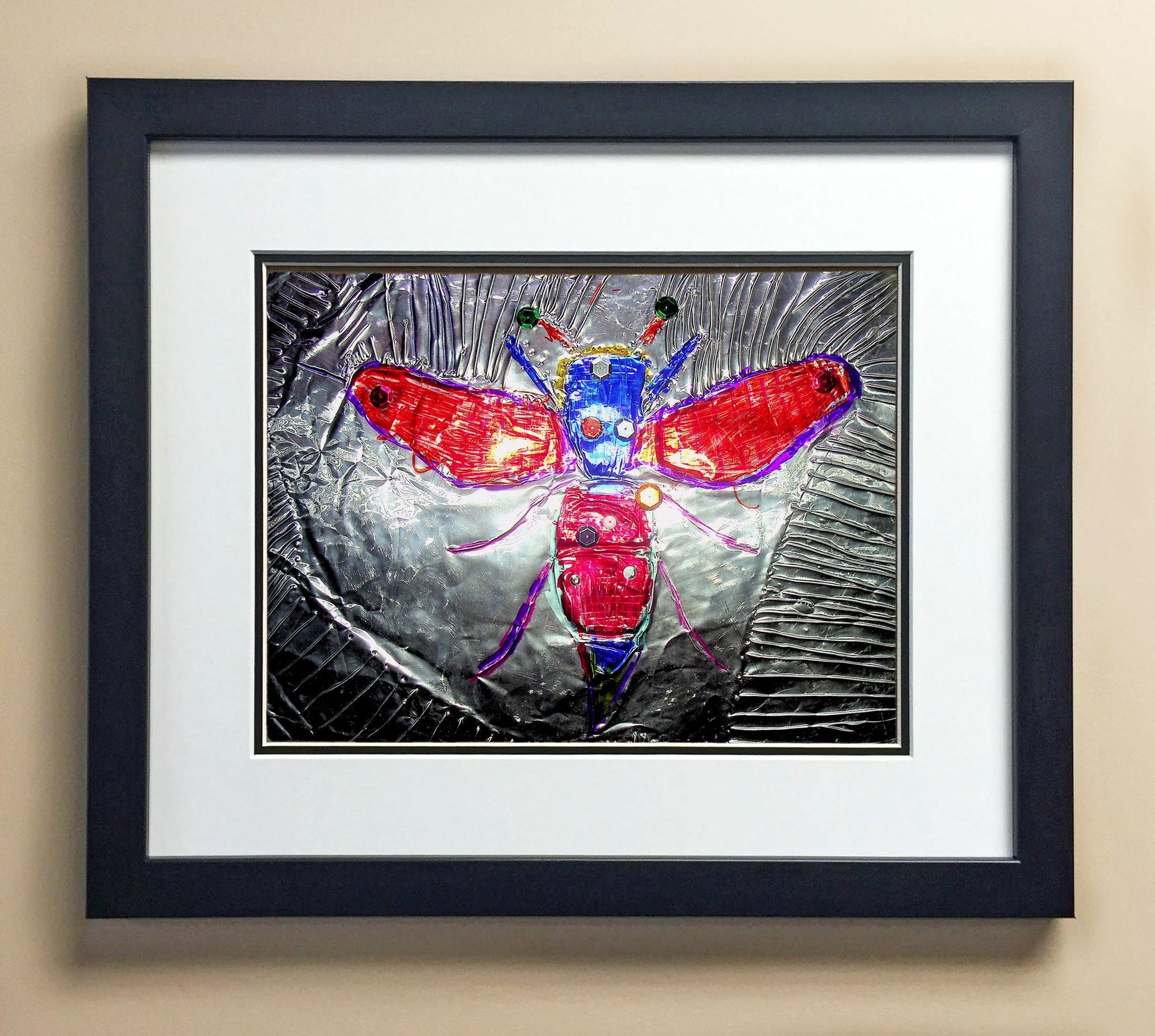 Included with the purchase is the Students Artwork, Frame, double matboard, shatter proof plexiglass, and a ready to hang backerboard with turnbuttons