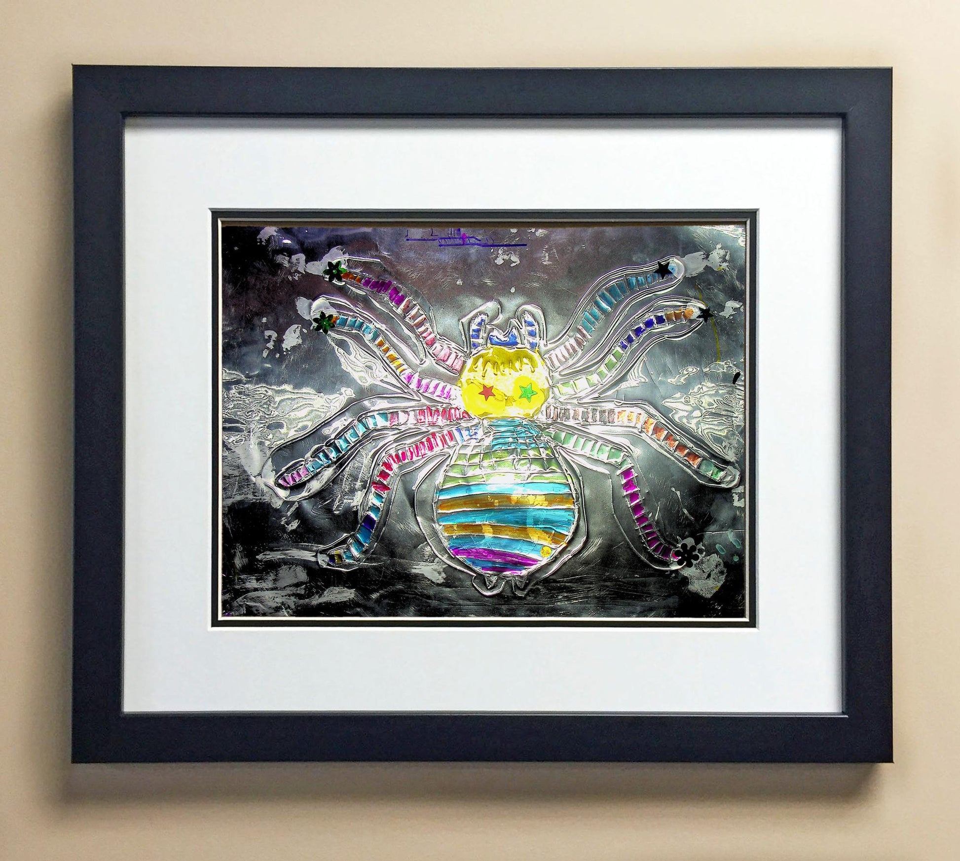 Included with the purchase is the Students Artwork, Frame, double matboard, shatter proof plexiglass, and a ready to hang backerboard with turnbuttons
