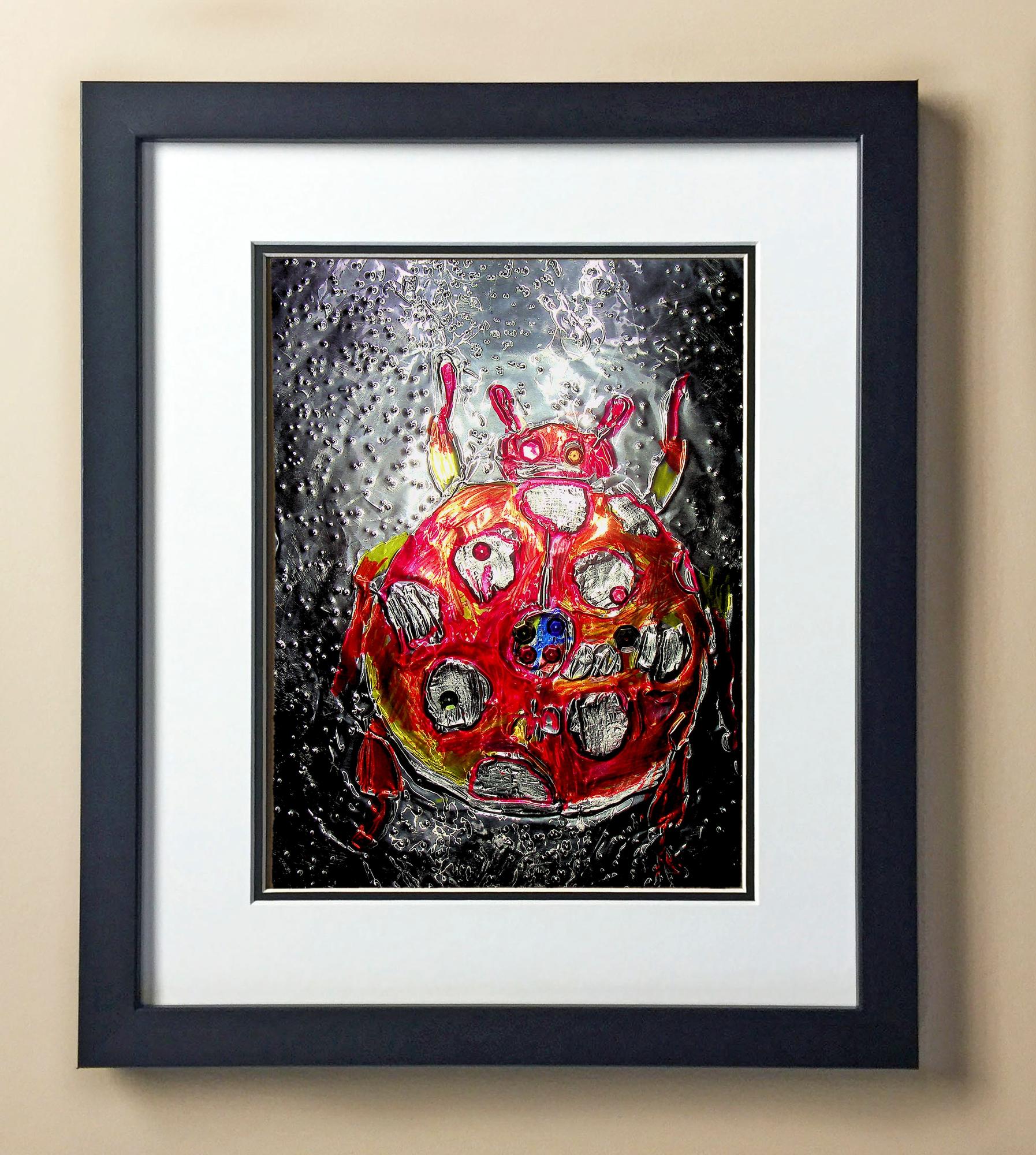 Included with the purchase is the Students Artwork, Frame, double matboard, shatter proof plexiglass, and a ready to hang backerboard with turnbuttons