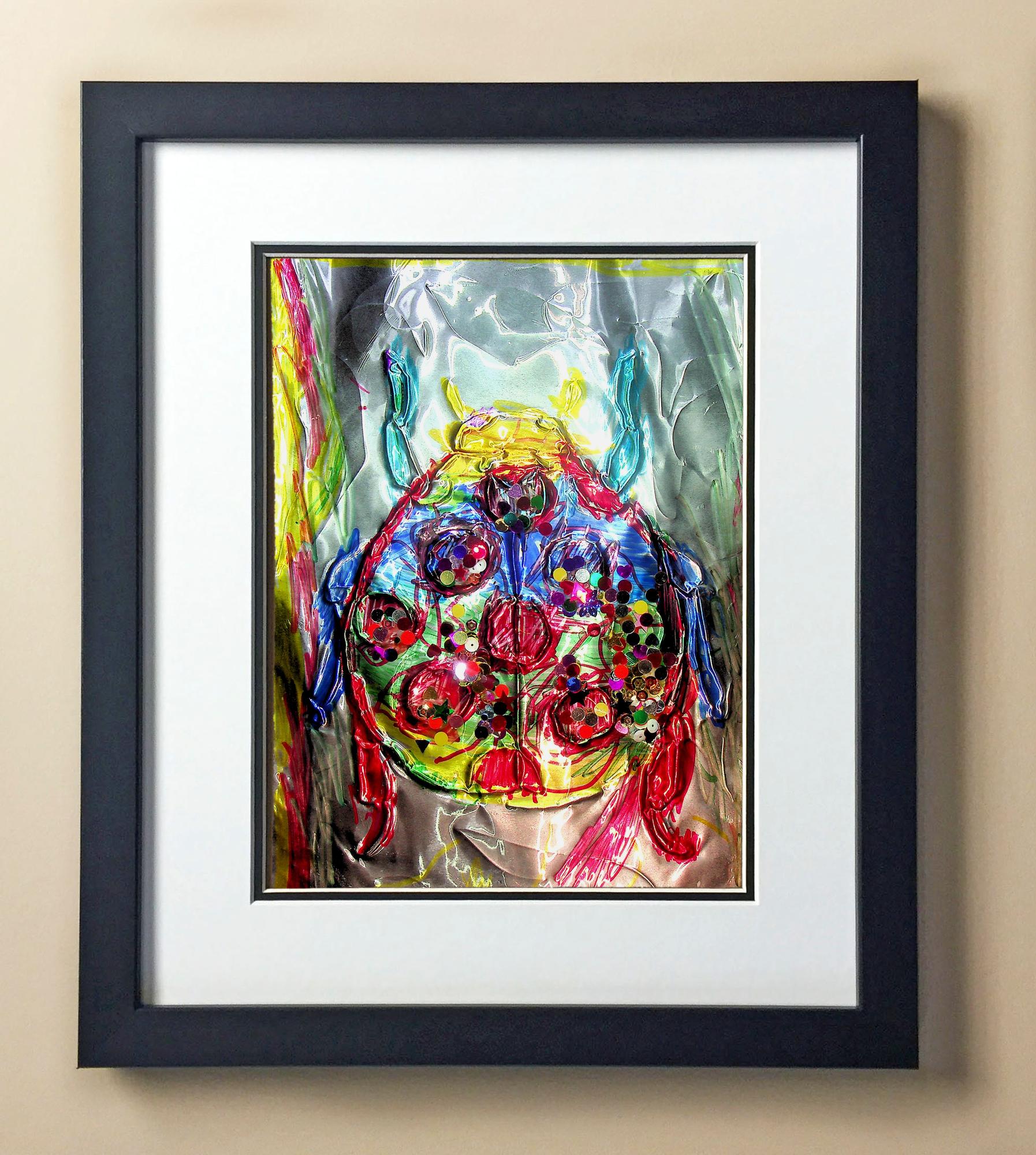 Included with the purchase is the Students Artwork, Frame, double matboard, shatter proof plexiglass, and a ready to hang backerboard with turnbuttons