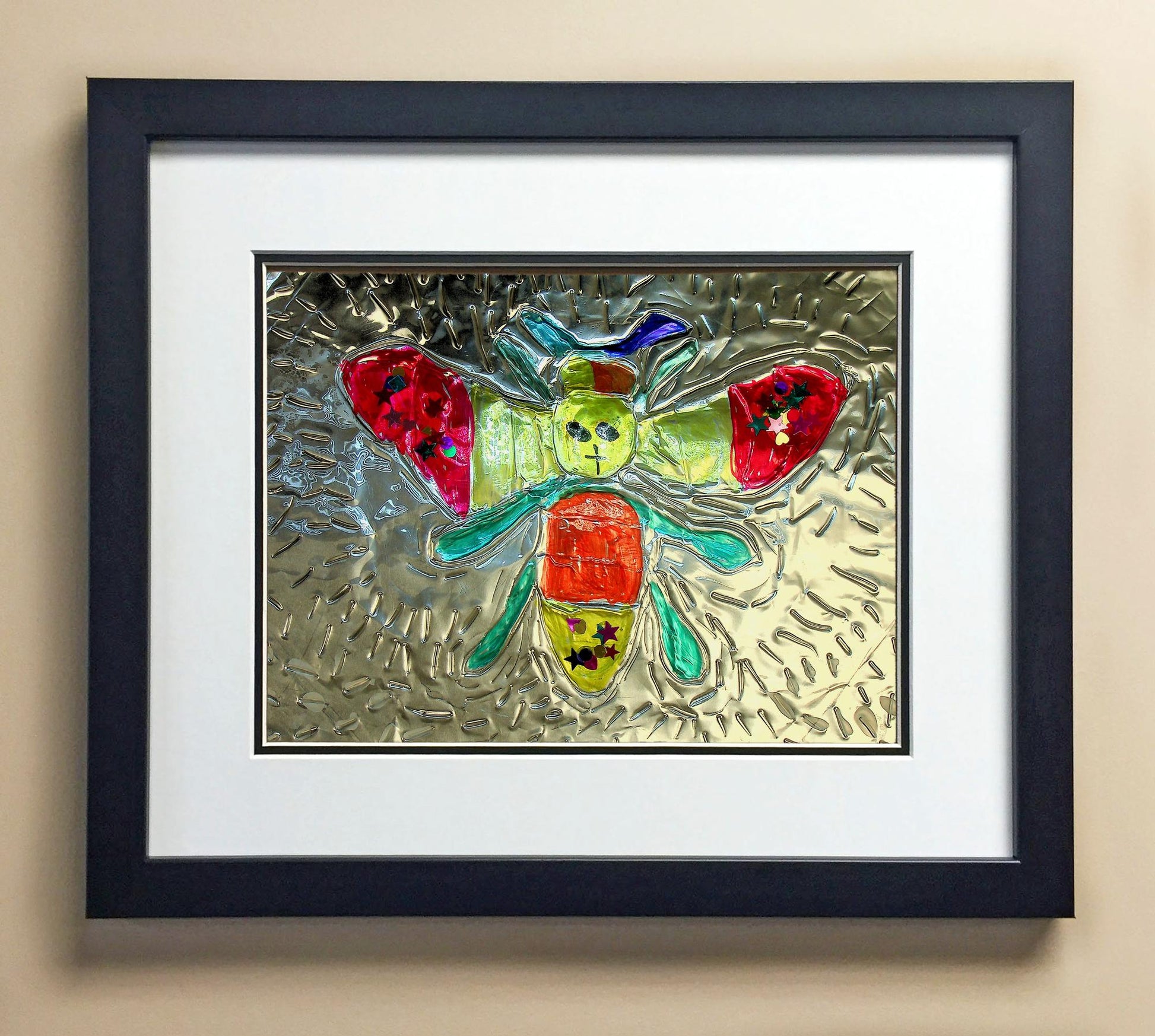 Included with the purchase is the Students Artwork, Frame, double matboard, shatter proof plexiglass, and a ready to hang backerboard with turnbuttons