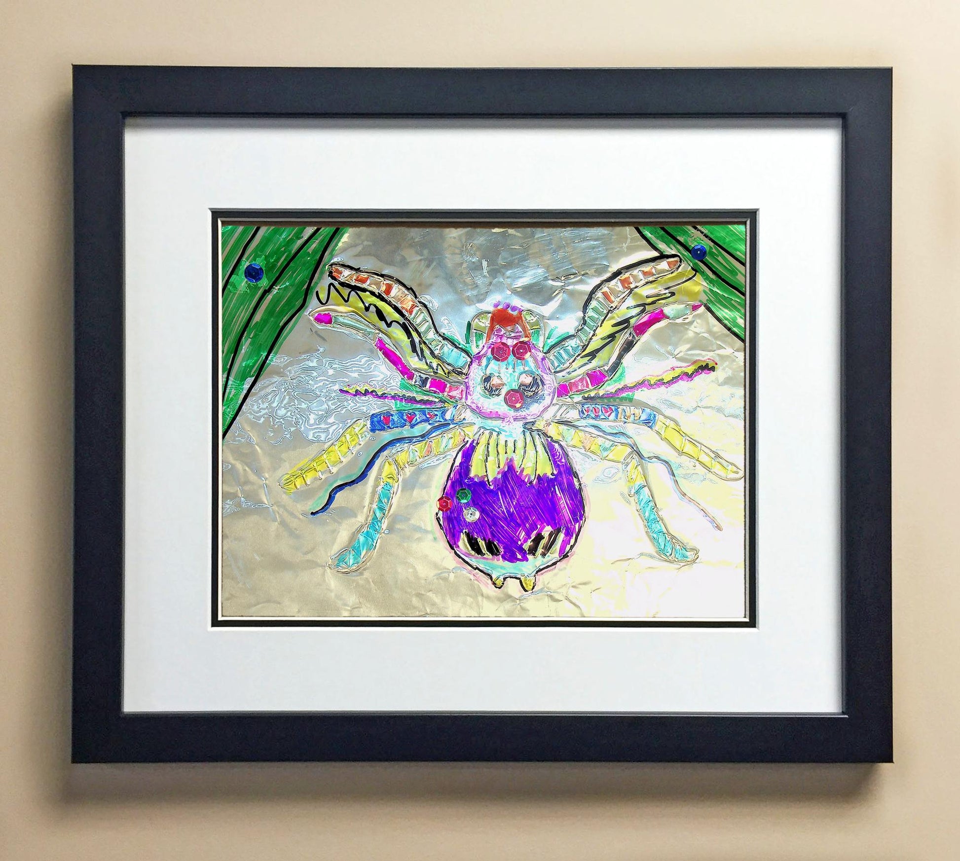 Included with the purchase is the Students Artwork, Frame, double matboard, shatter proof plexiglass, and a ready to hang backerboard with turnbuttons