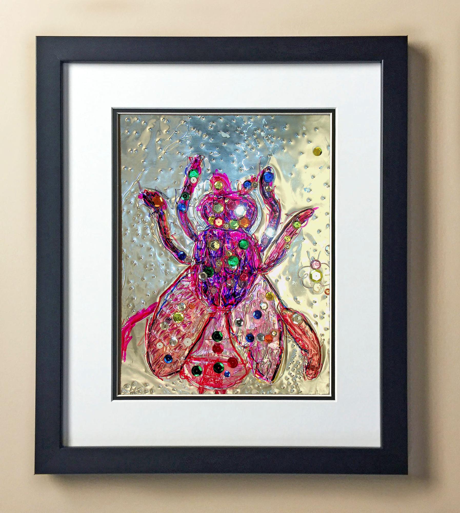 Included with the purchase is the Students Artwork, Frame, double matboard, shatter proof plexiglass, and a ready to hang backerboard with turnbuttons
