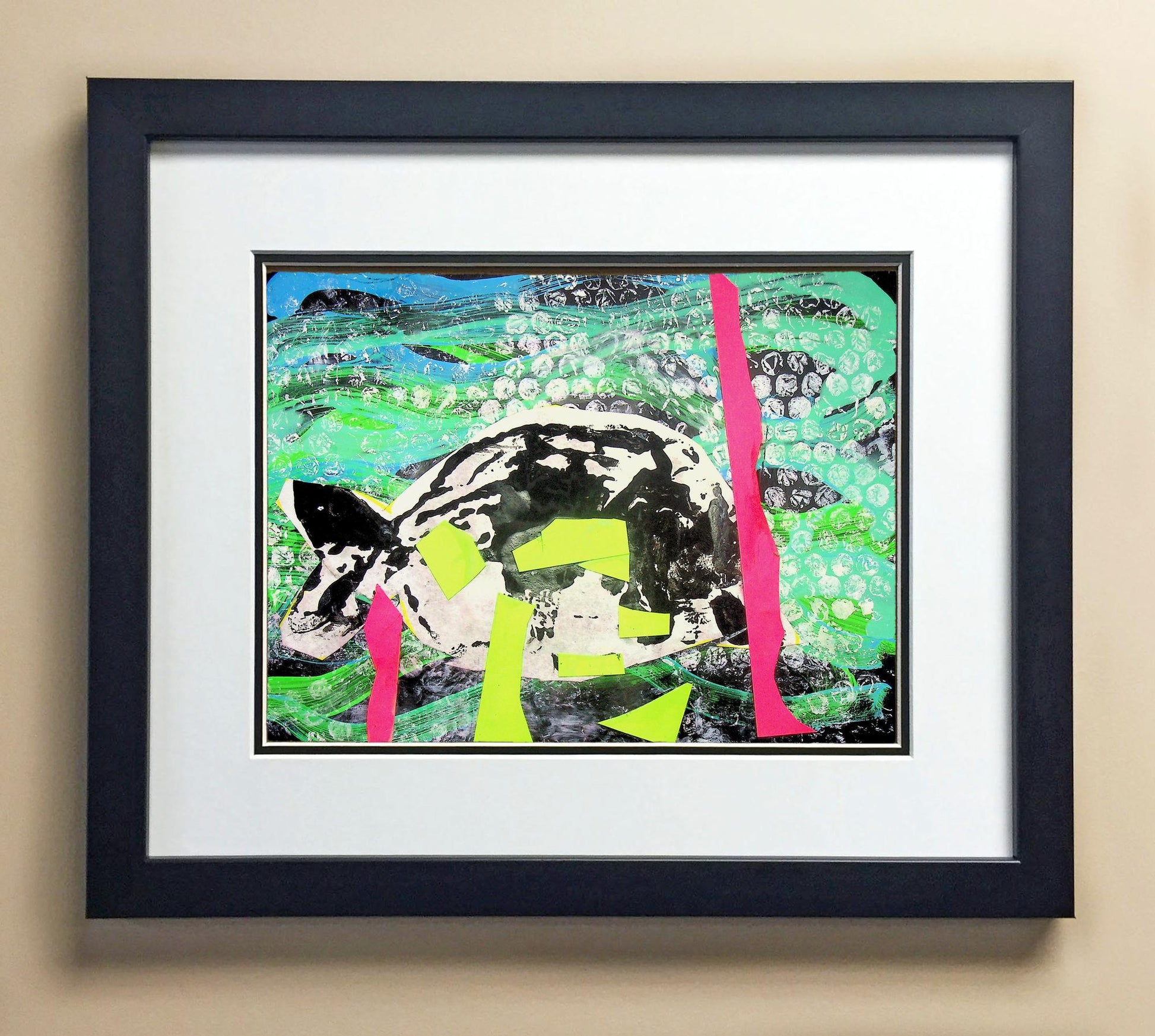 Included with the purchase is the Students Artwork, Frame, double matboard, shatter proof plexiglass, and a ready to hang backerboard with turnbuttons