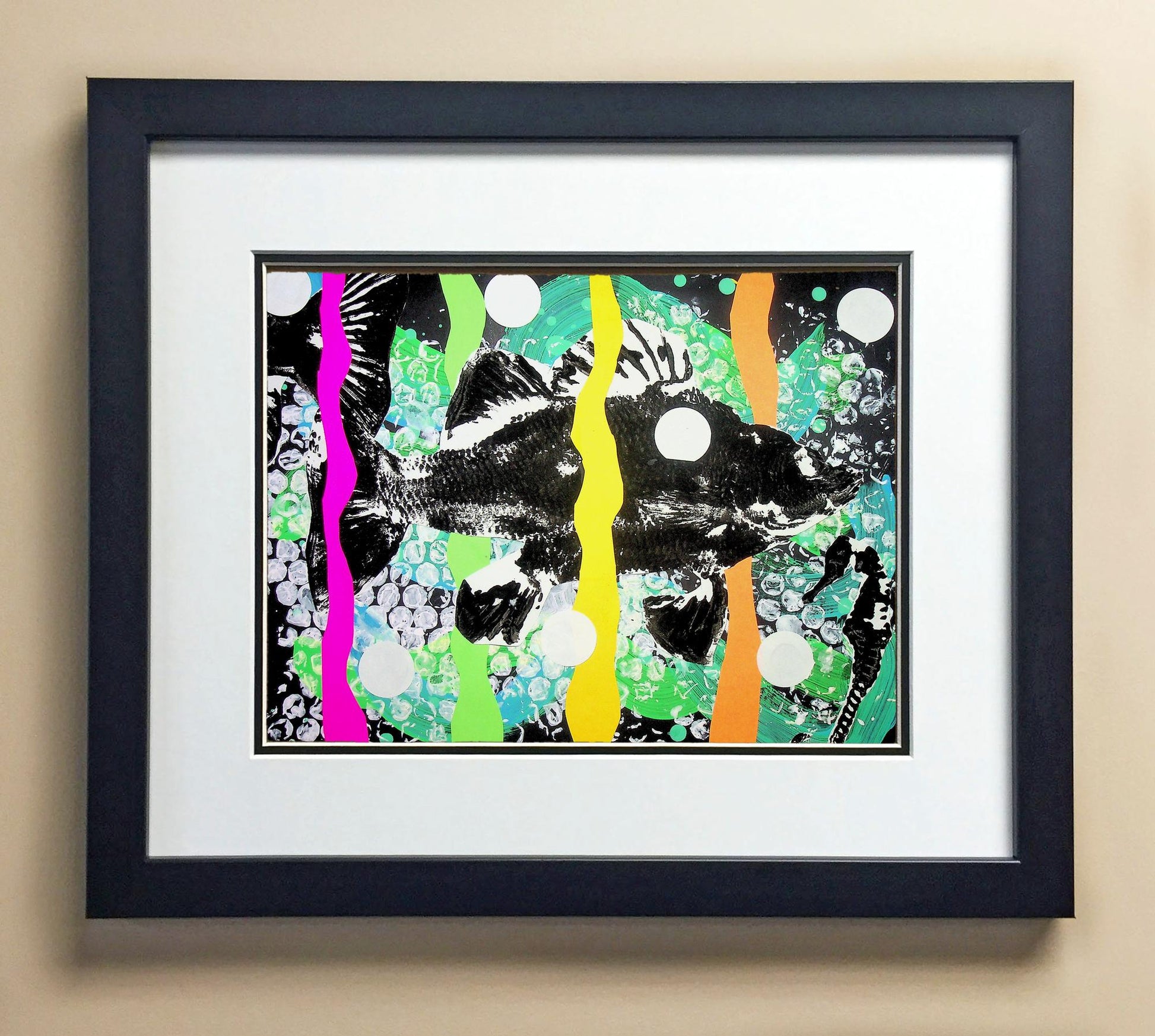 Included with the purchase is the Students Artwork, Frame, double matboard, shatter proof plexiglass, and a ready to hang backerboard with turnbuttons