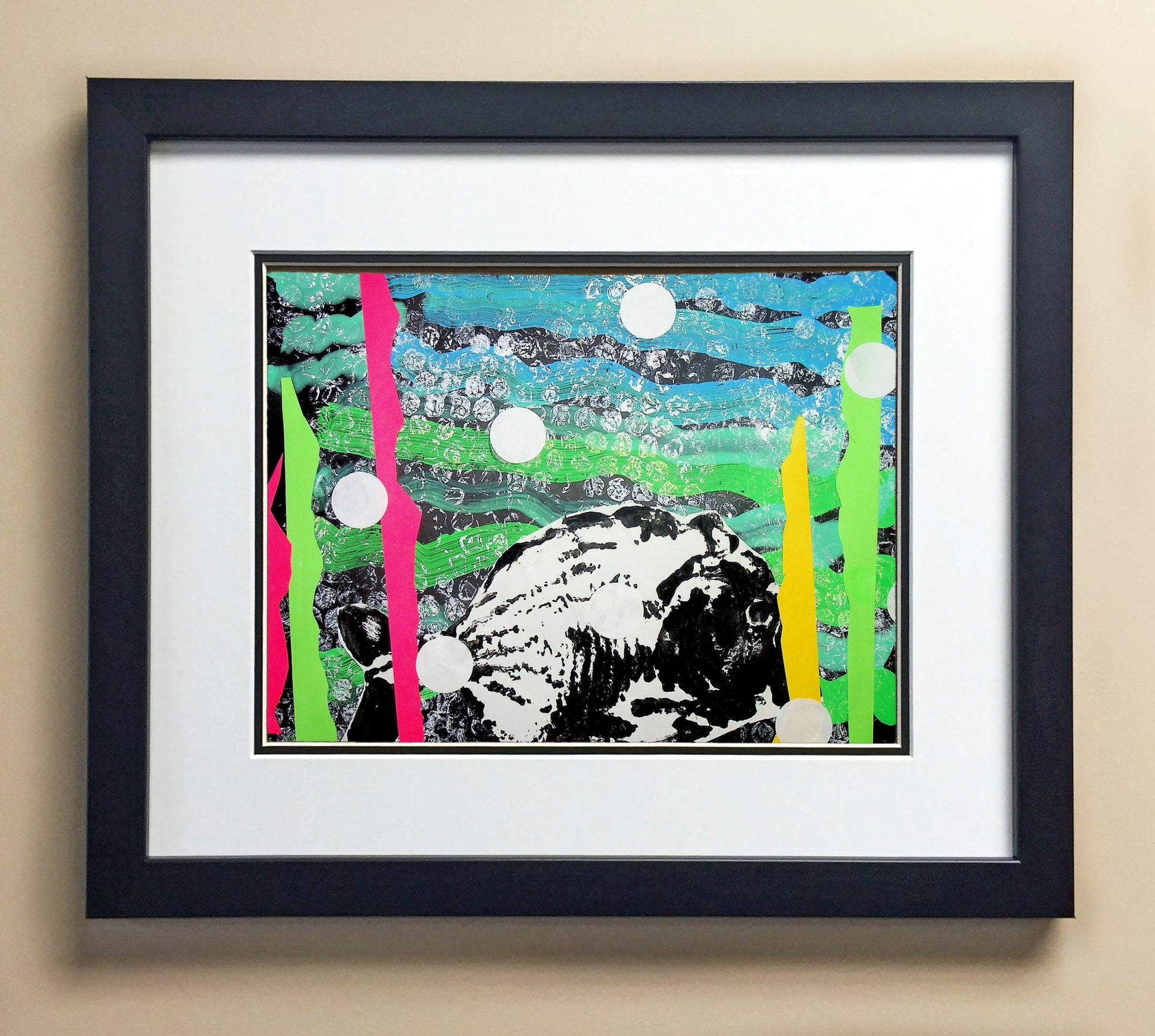 Included with the purchase is the Students Artwork, Frame, double matboard, shatter proof plexiglass, and a ready to hang backerboard with turnbuttons