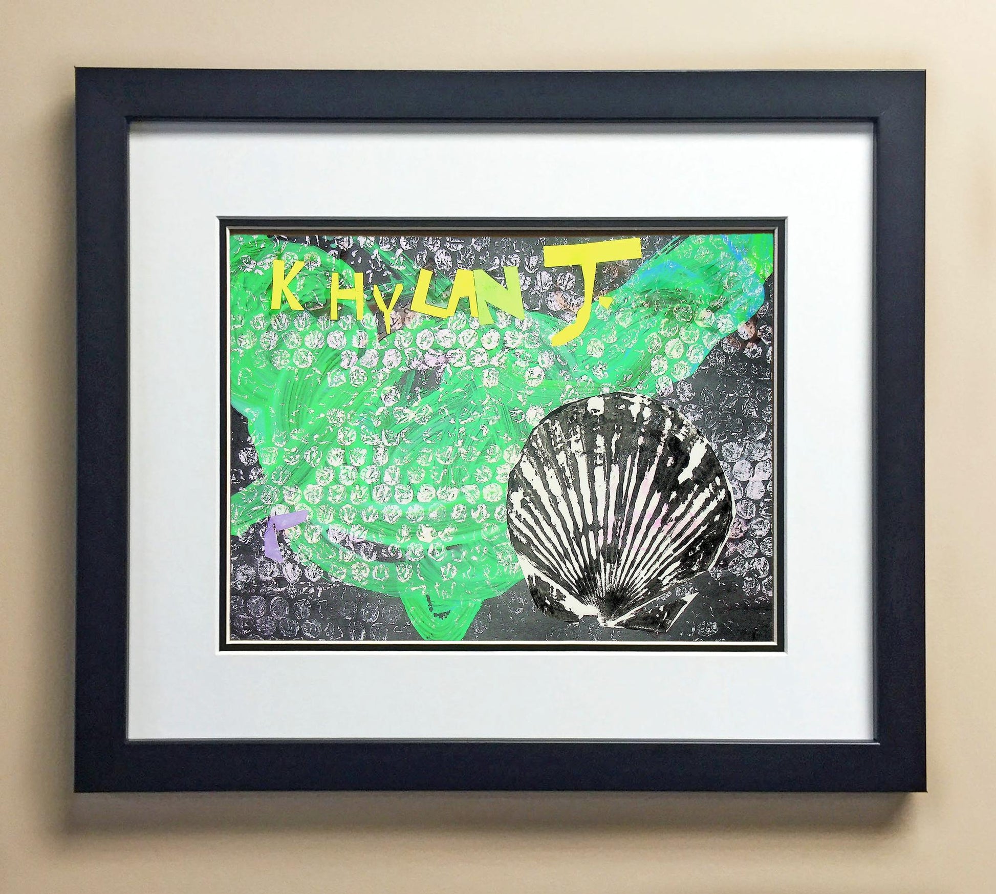 Included with the purchase is the Students Artwork, Frame, double matboard, shatter proof plexiglass, and a ready to hang backerboard with turnbuttons