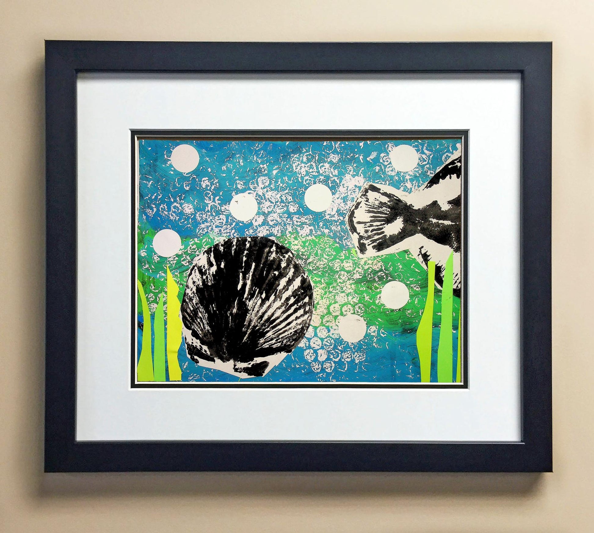 Included with the purchase is the Students Artwork, Frame, double matboard, shatter proof plexiglass, and a ready to hang backerboard with turnbuttons