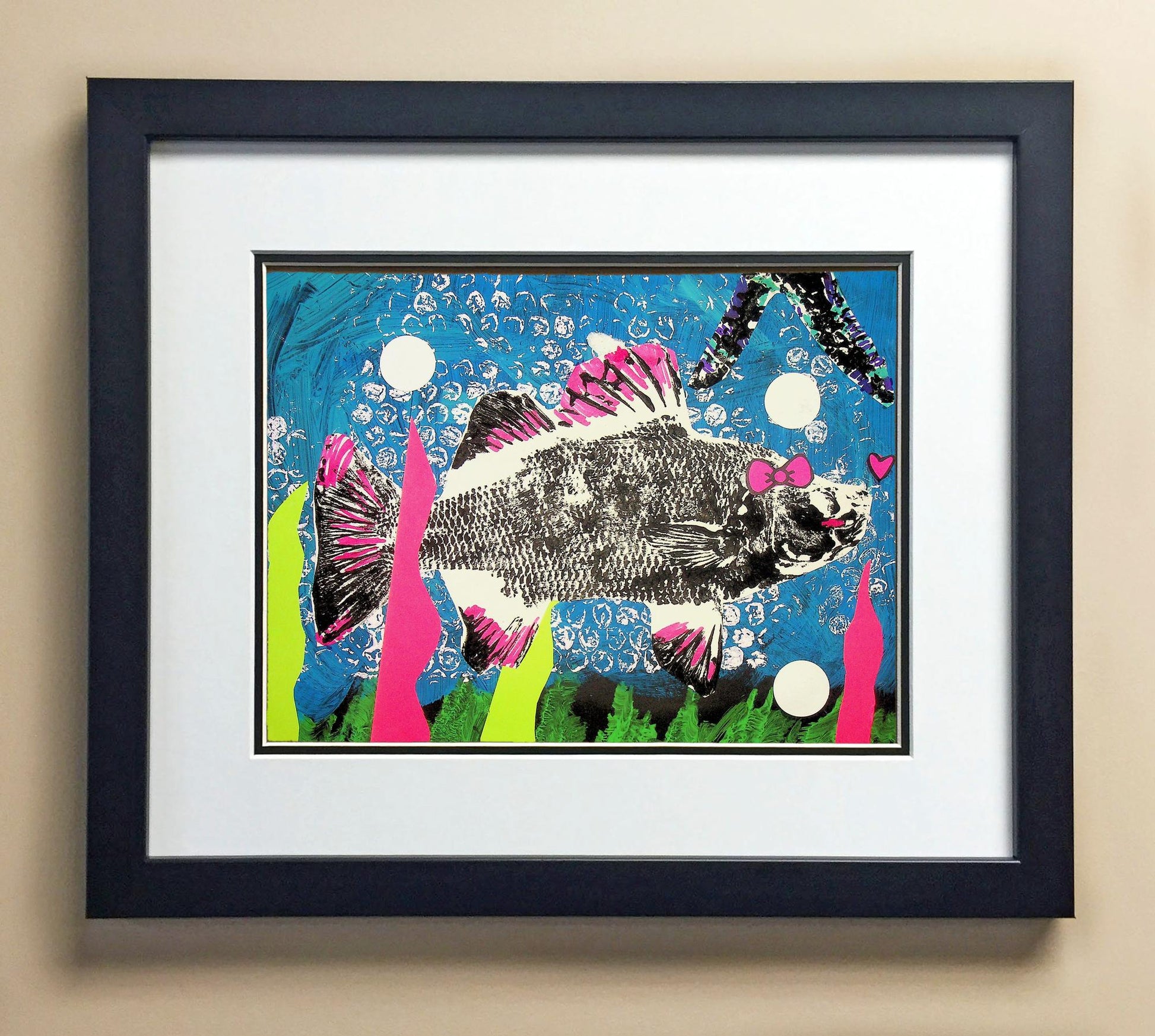 Included with the purchase is the Students Artwork, Frame, double matboard, shatter proof plexiglass, and a ready to hang backerboard with turnbuttons