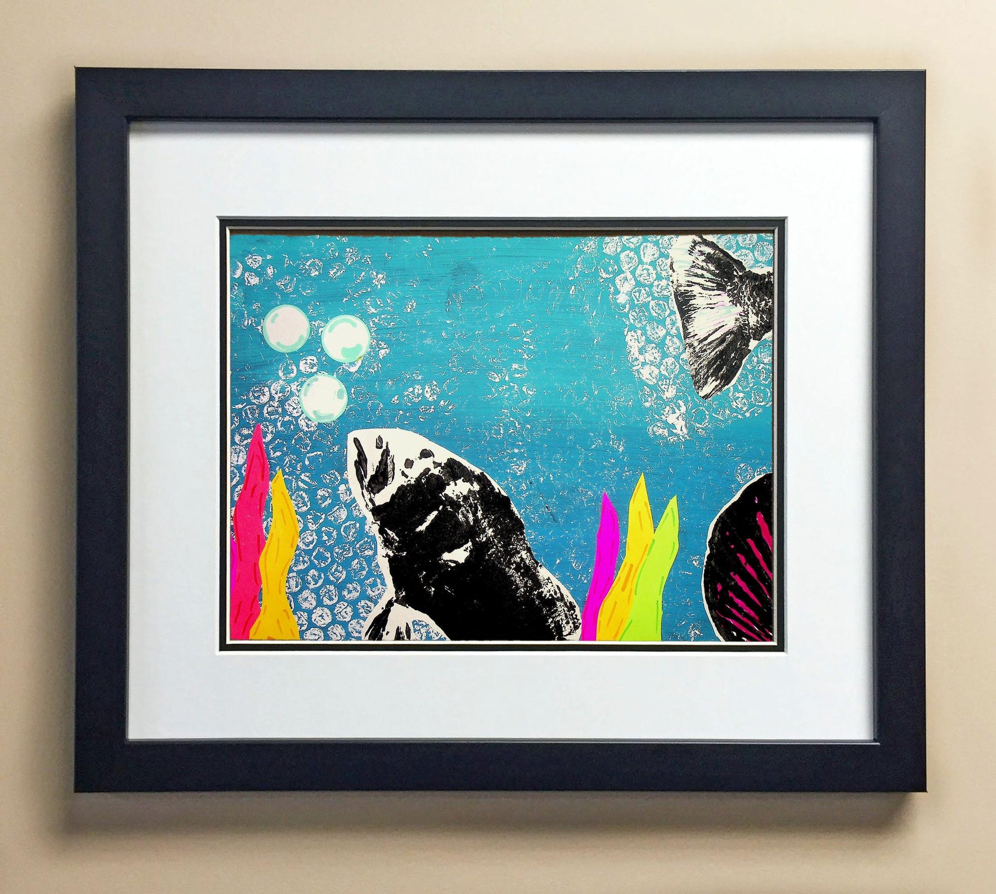Included with the purchase is the Students Artwork, Frame, double matboard, shatter proof plexiglass, and a ready to hang backerboard with turnbuttons