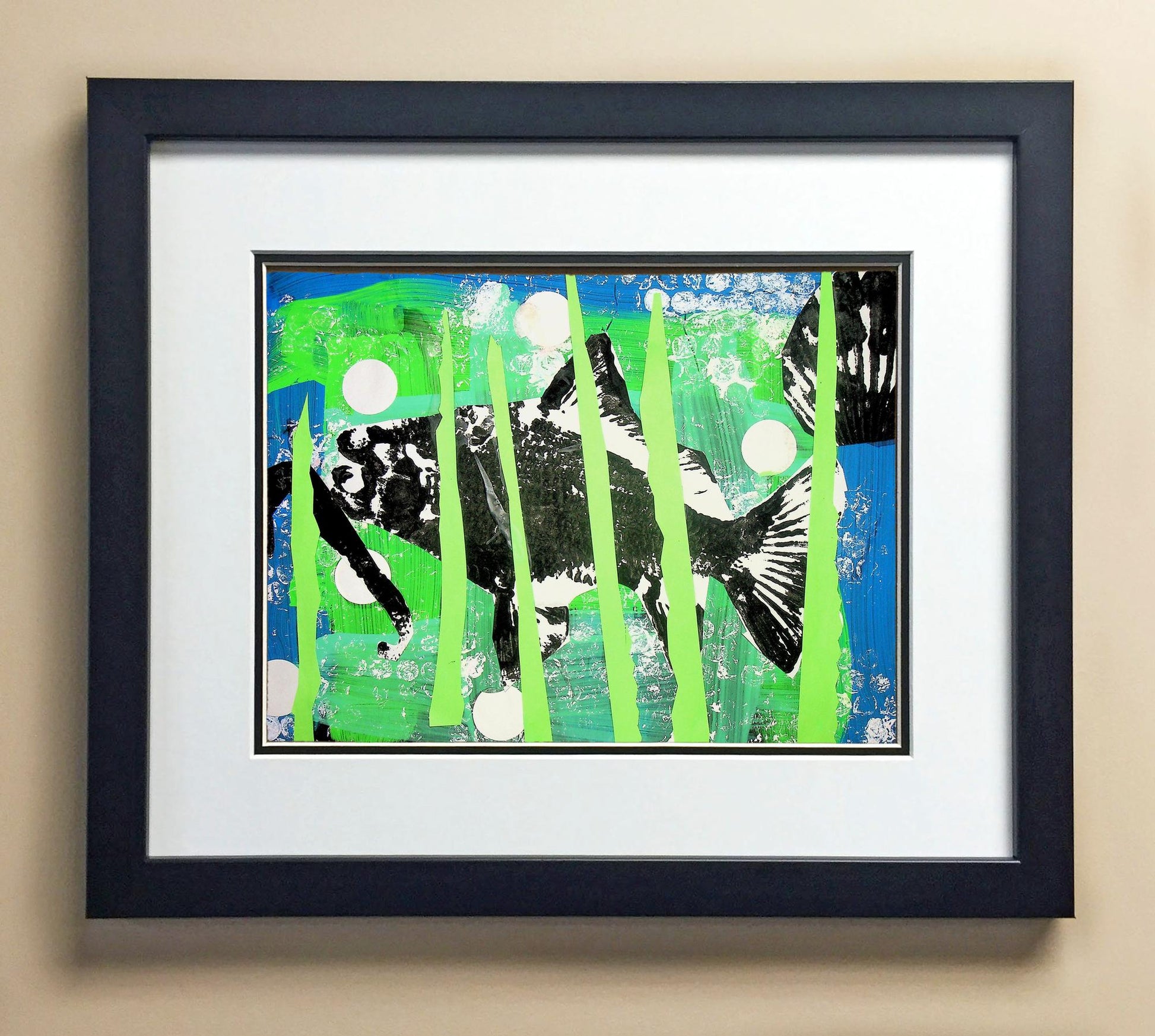 Included with the purchase is the Students Artwork, Frame, double matboard, shatter proof plexiglass, and a ready to hang backerboard with turnbuttons
