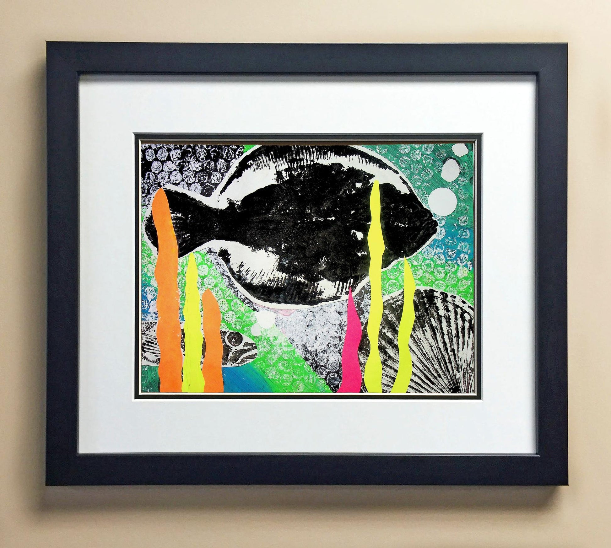 Included with the purchase is the Students Artwork, Frame, double matboard, shatter proof plexiglass, and a ready to hang backerboard with turnbuttons