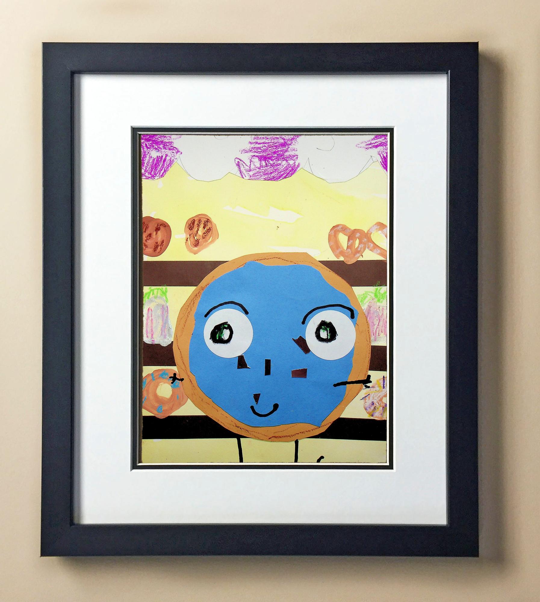 Included with the purchase is the Students Artwork, Frame, double matboard, shatter proof plexiglass, and a ready to hang backerboard with turnbuttons