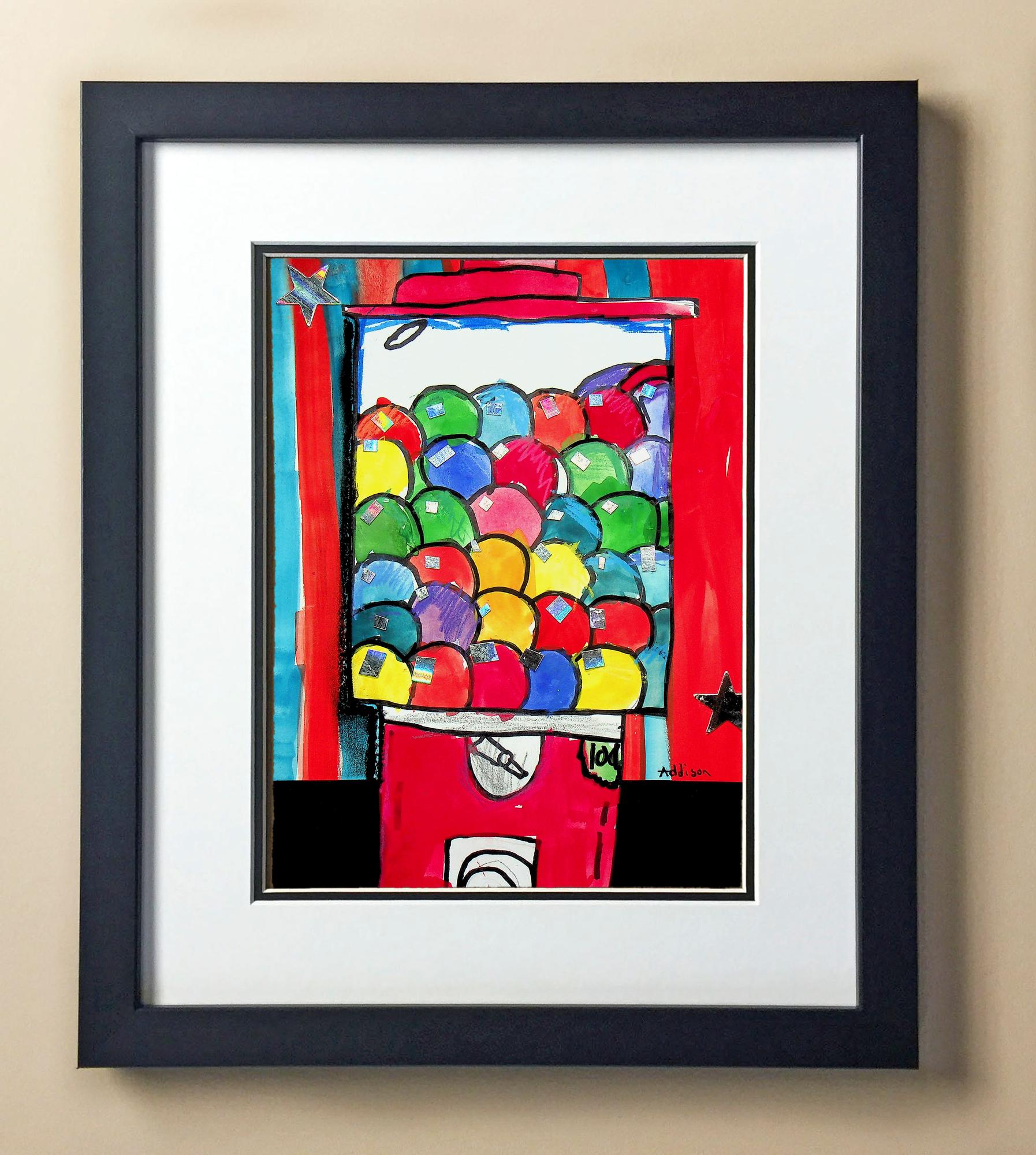 Included with the purchase is the Students Artwork, Frame, double matboard, shatter proof plexiglass, and a ready to hang backerboard with turnbuttons