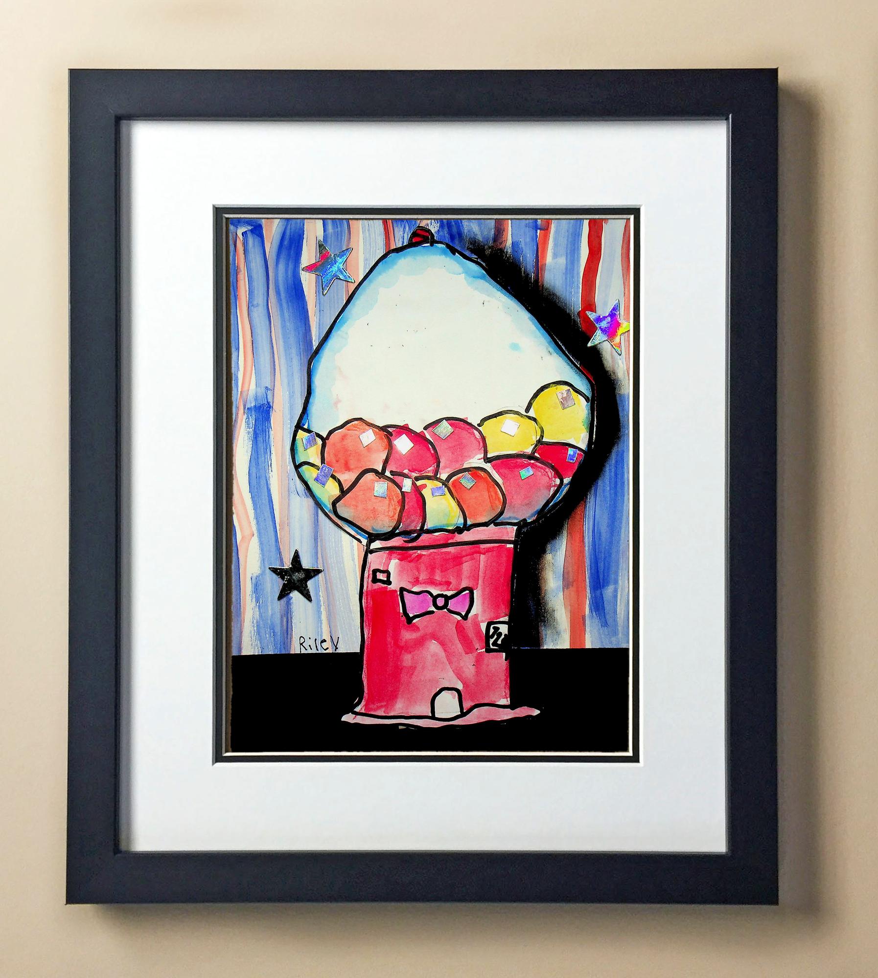 Included with the purchase is the Students Artwork, Frame, double matboard, shatter proof plexiglass, and a ready to hang backerboard with turnbuttons