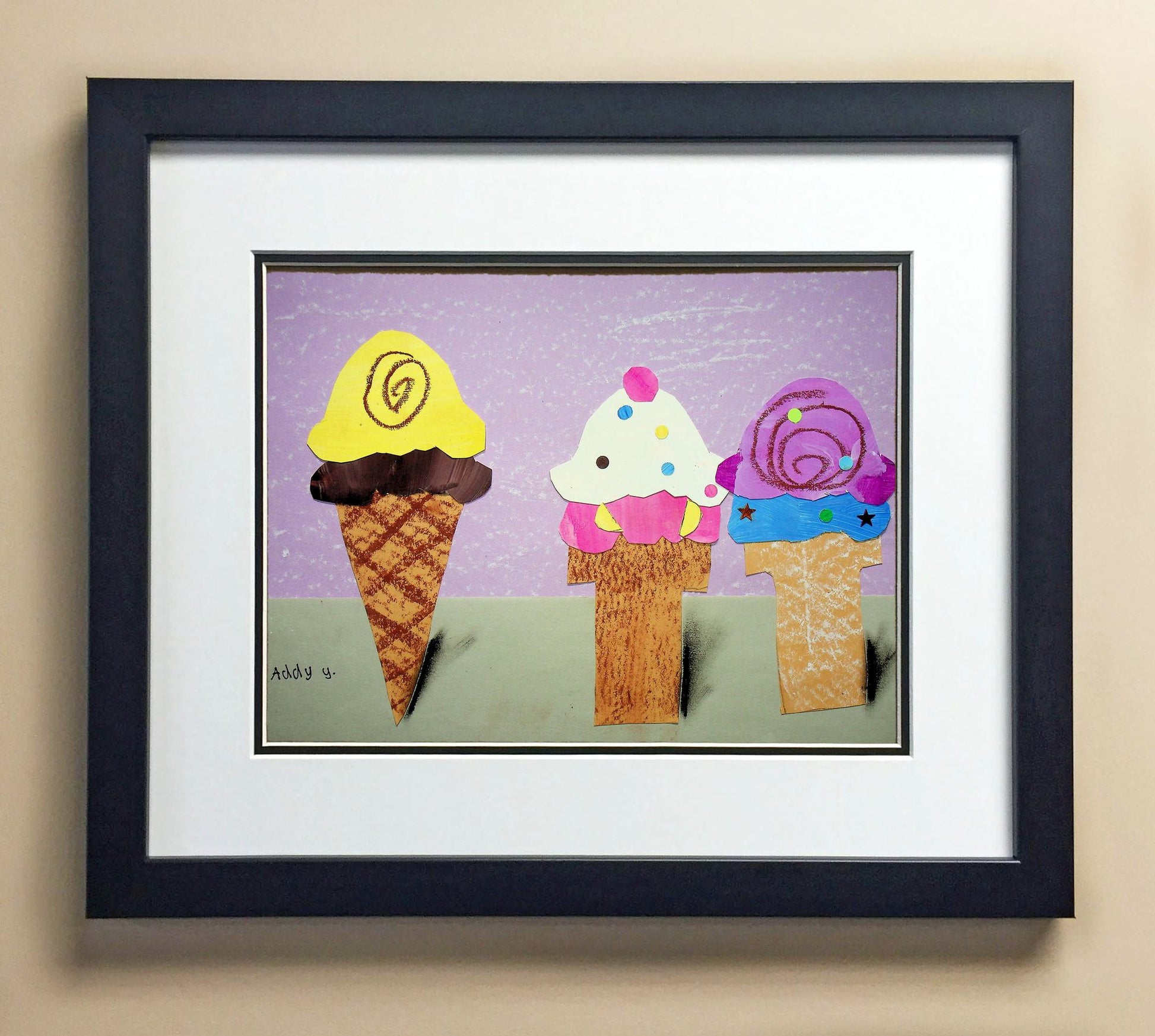 Included with the purchase is the Students Artwork, Frame, double matboard, shatter proof plexiglass, and a ready to hang backerboard with turnbuttons