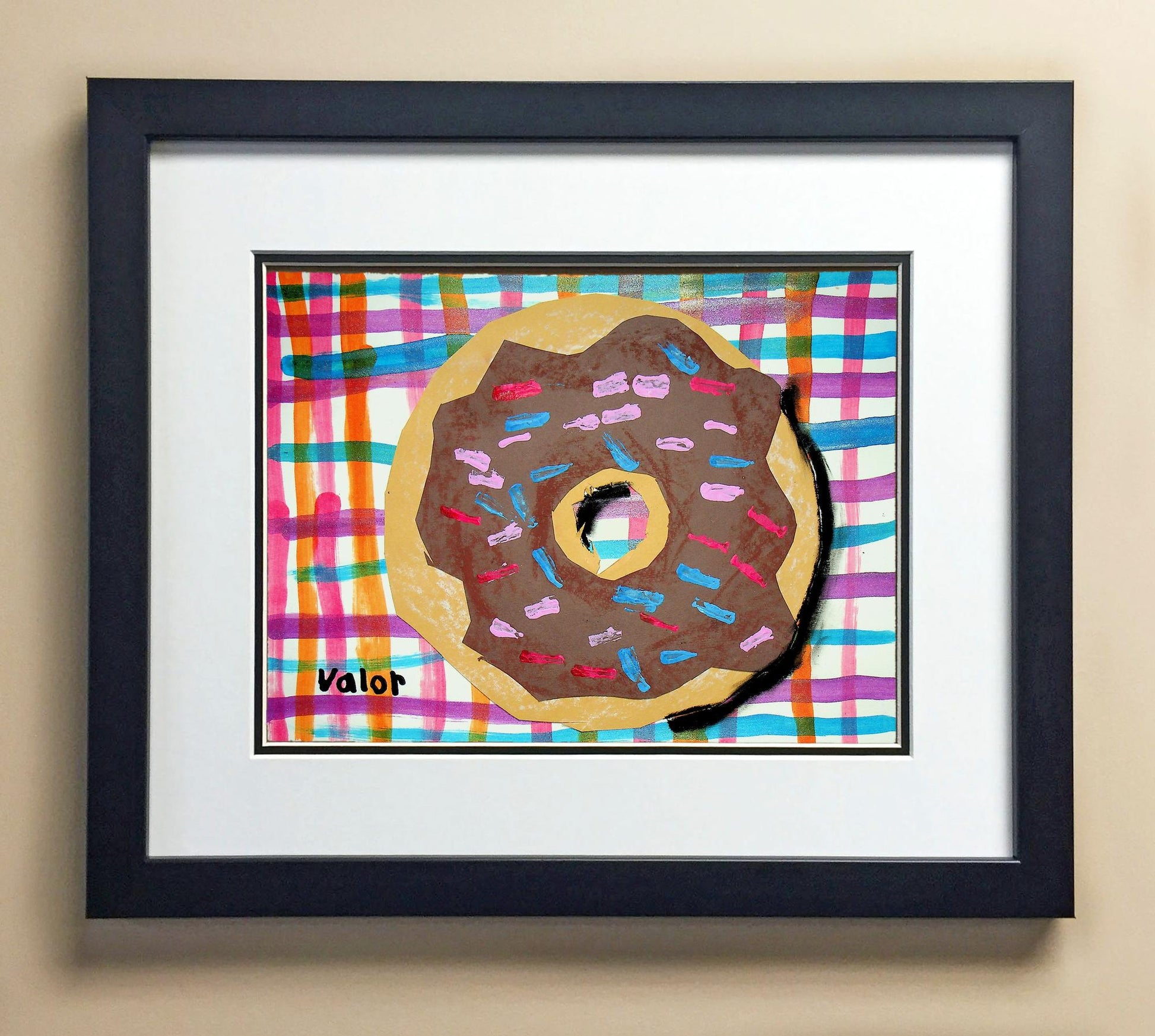 Included with the purchase is the Students Artwork, Frame, double matboard, shatter proof plexiglass, and a ready to hang backerboard with turnbuttons