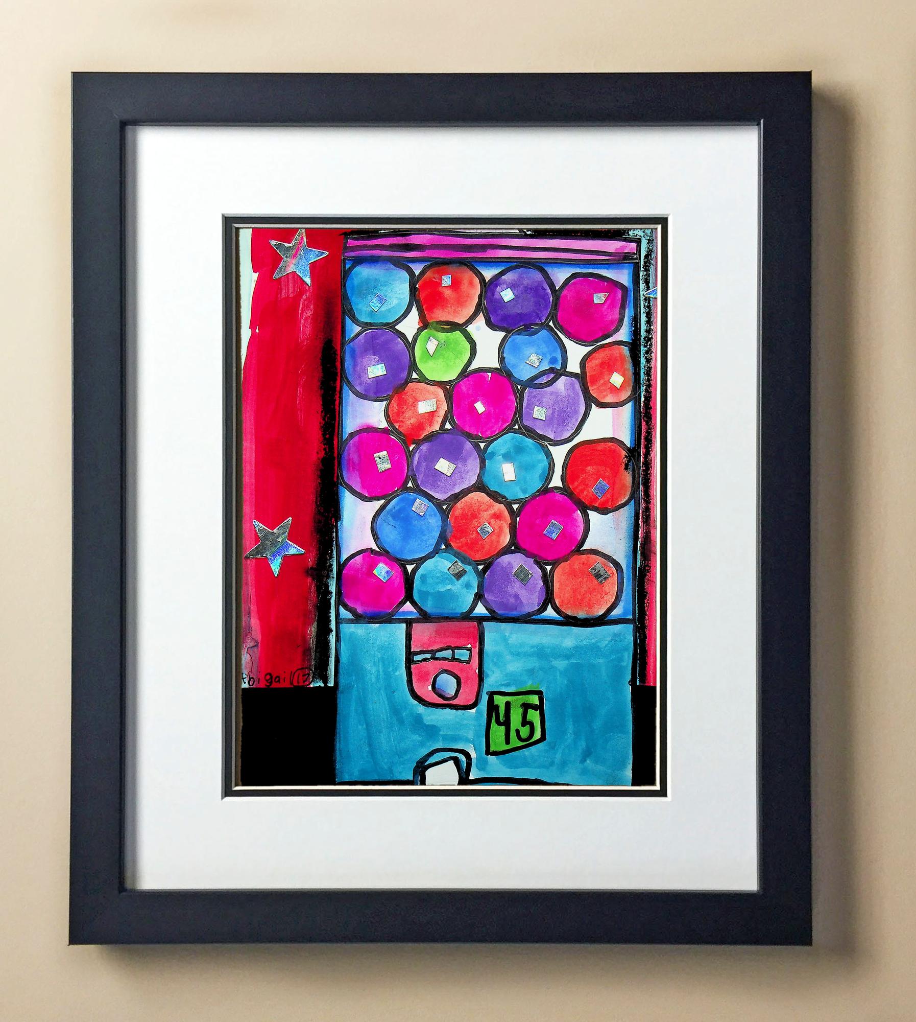 Included with the purchase is the Students Artwork, Frame, double matboard, shatter proof plexiglass, and a ready to hang backerboard with turnbuttons