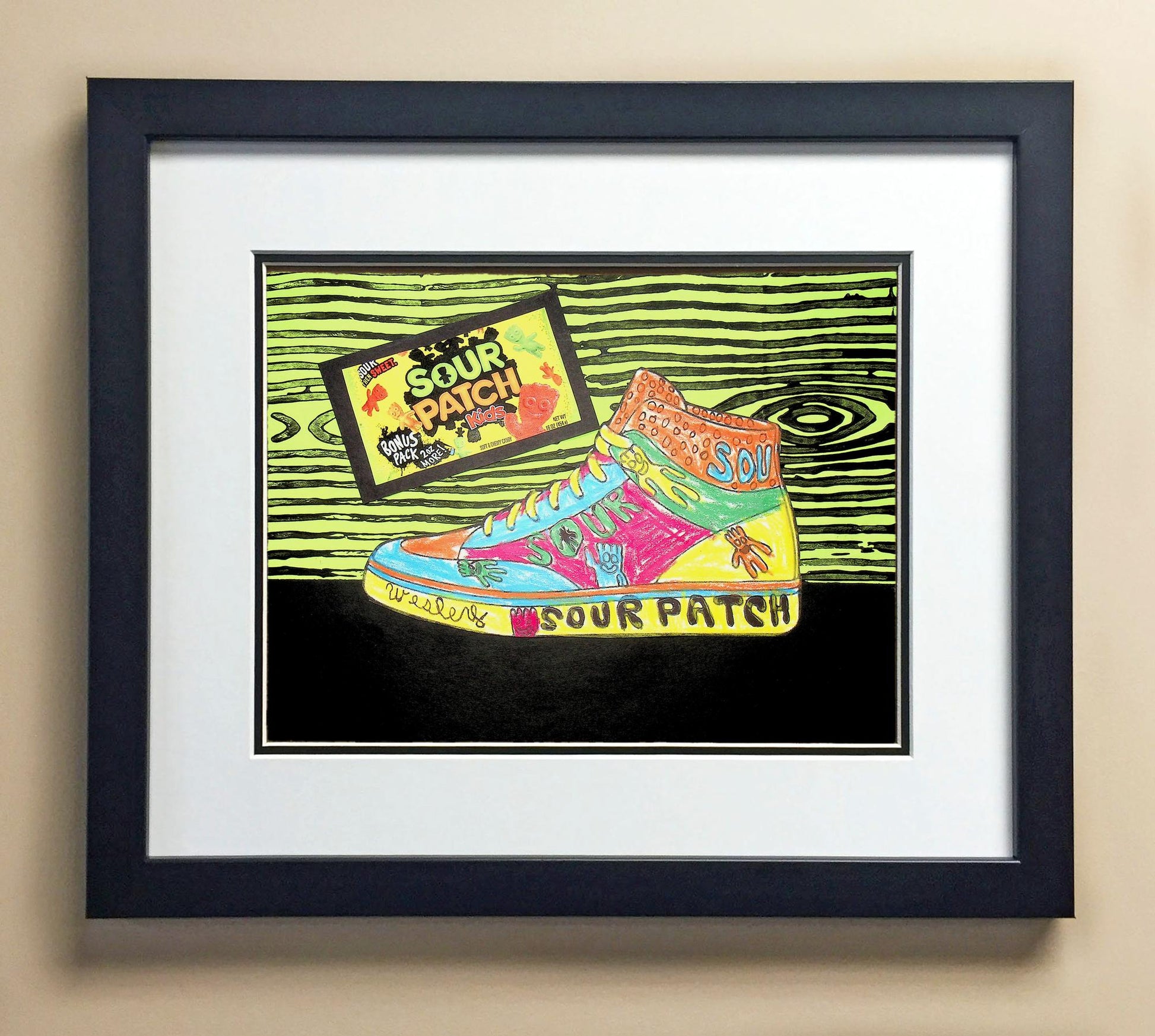 Included with the purchase is the Students Artwork, Frame, double matboard, shatter proof plexiglass, and a ready to hang backerboard with turnbuttons