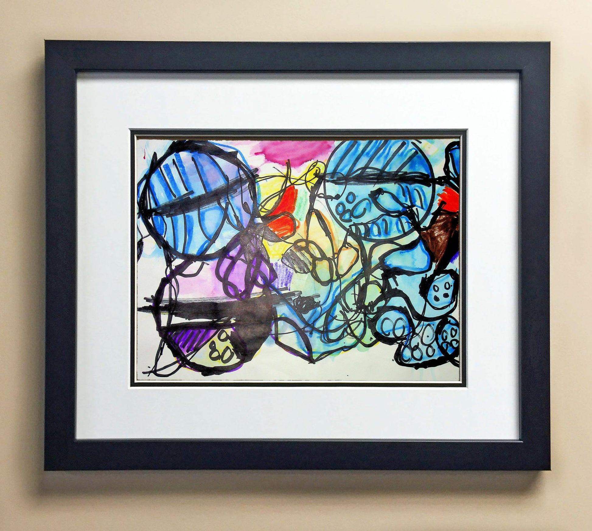 Included with the purchase is the Students Artwork, Frame, double matboard, shatter proof plexiglass, and a ready to hang backerboard with turnbuttons