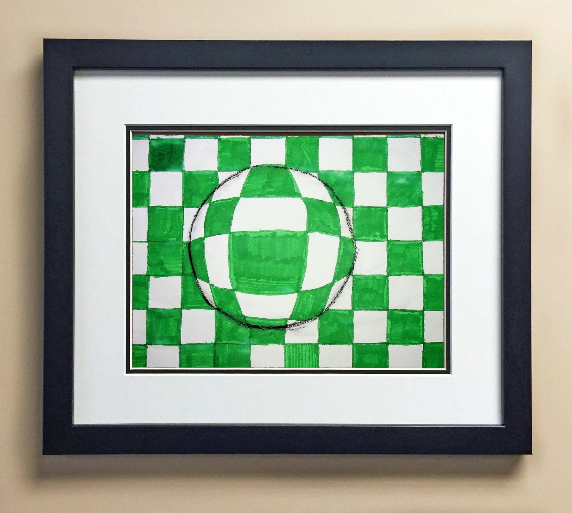 Included with the purchase is the Students Artwork, Frame, double matboard, shatter proof plexiglass, and a ready to hang backerboard with turnbuttons