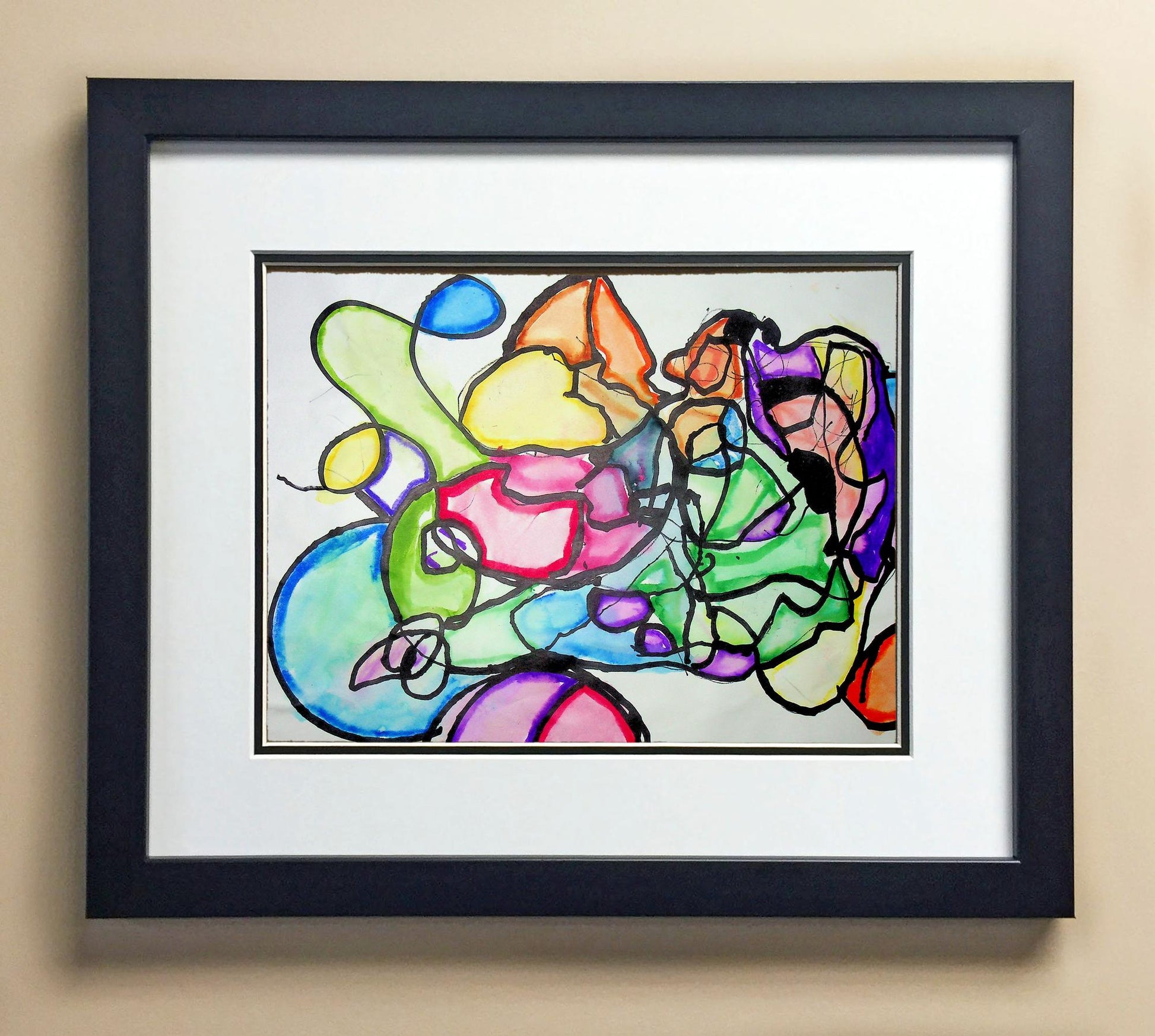 Included with the purchase is the Students Artwork, Frame, double matboard, shatter proof plexiglass, and a ready to hang backerboard with turnbuttons