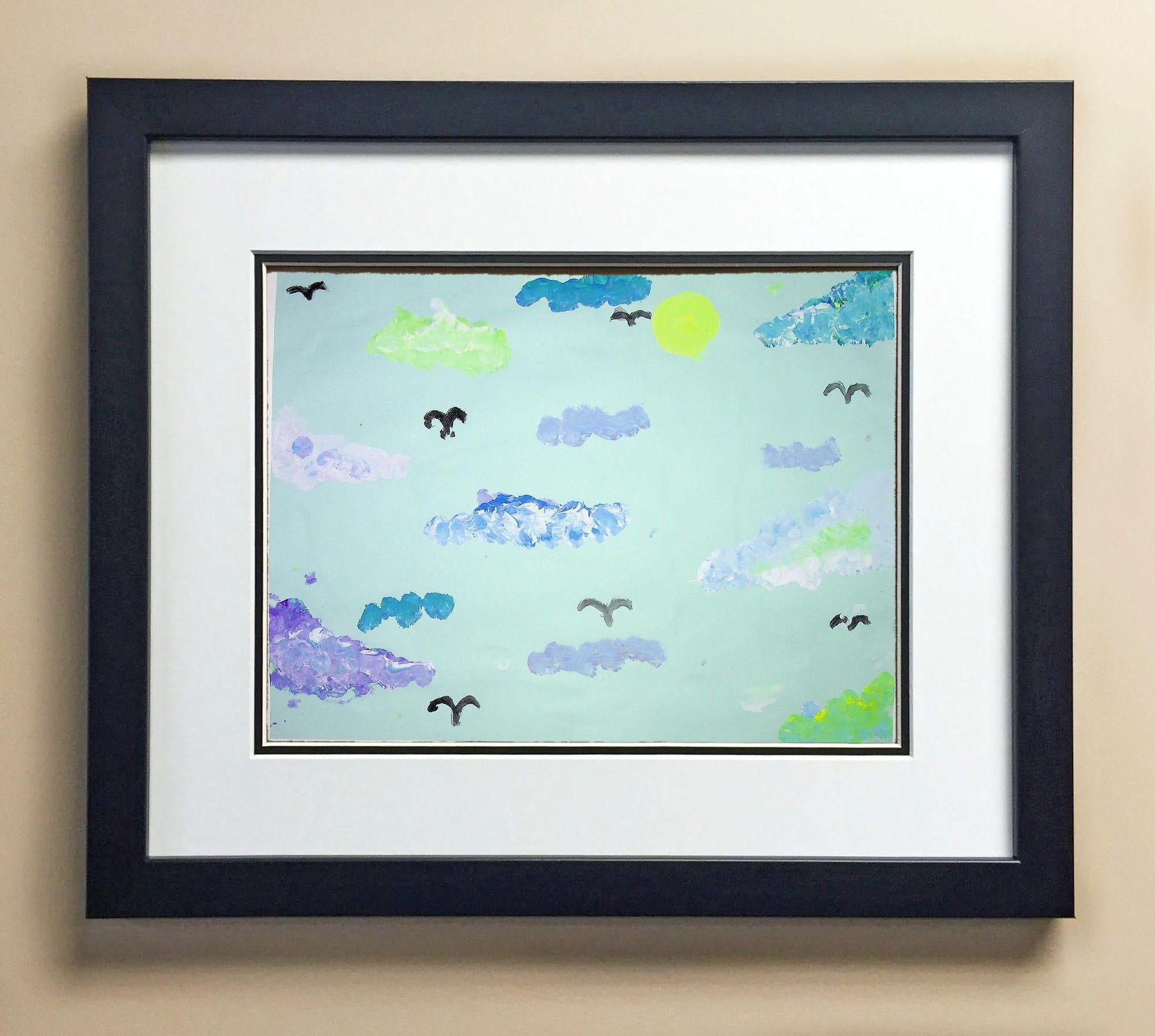 Included with the purchase is the Students Artwork, Frame, double matboard, shatter proof plexiglass, and a ready to hang backerboard with turnbuttons