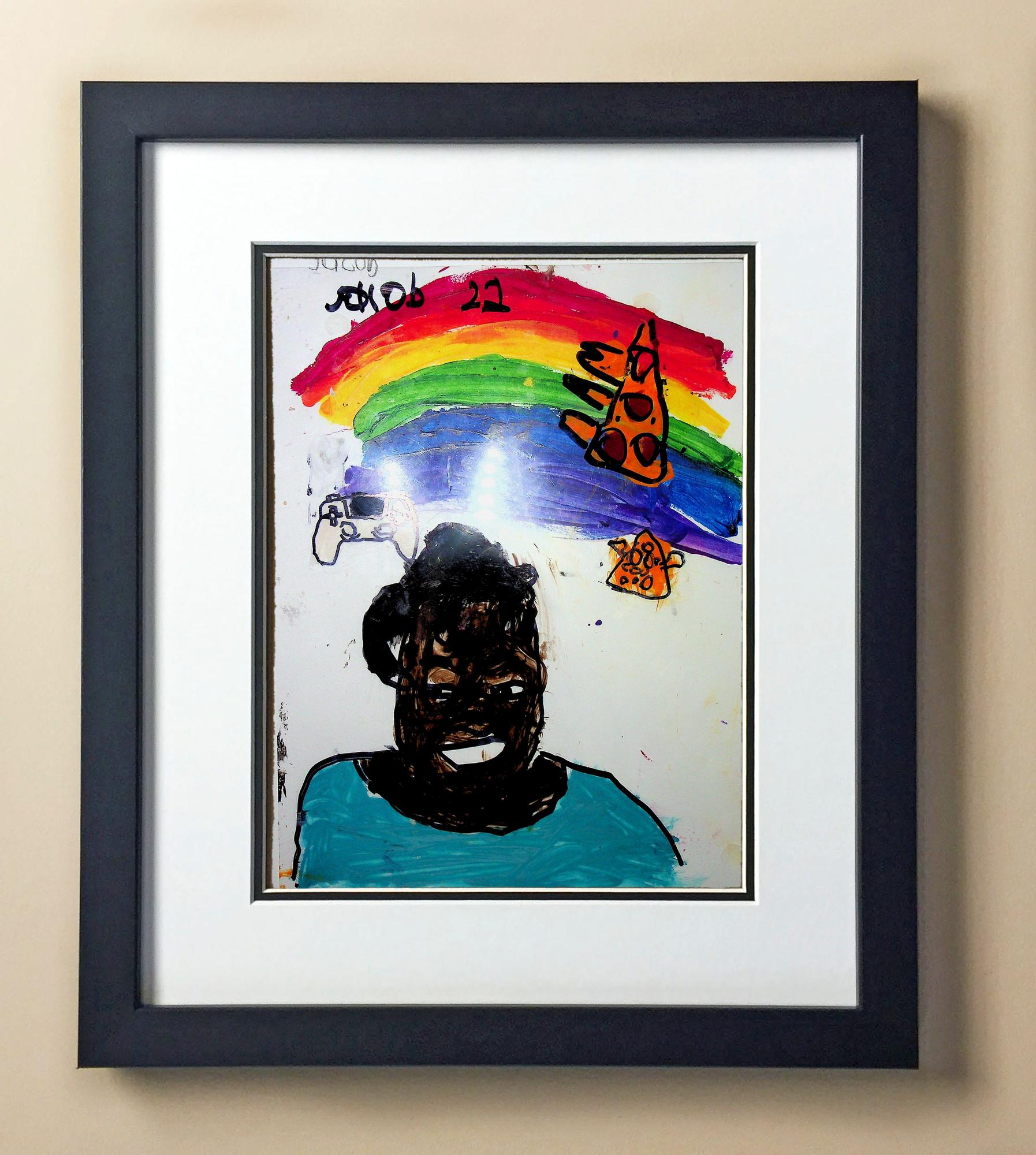 Included with the purchase is the Students Artwork, Frame, double matboard, shatter proof plexiglass, and a ready to hang backerboard with turnbuttons