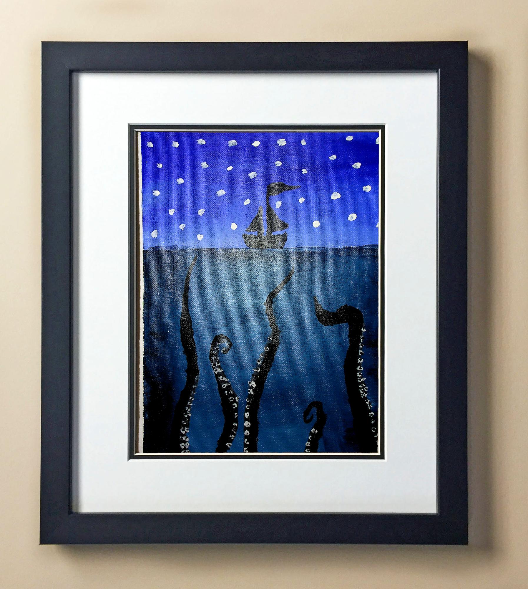 Included with the purchase is the Students Artwork, Frame, double matboard, shatter proof plexiglass, and a ready to hang backerboard with turnbuttons