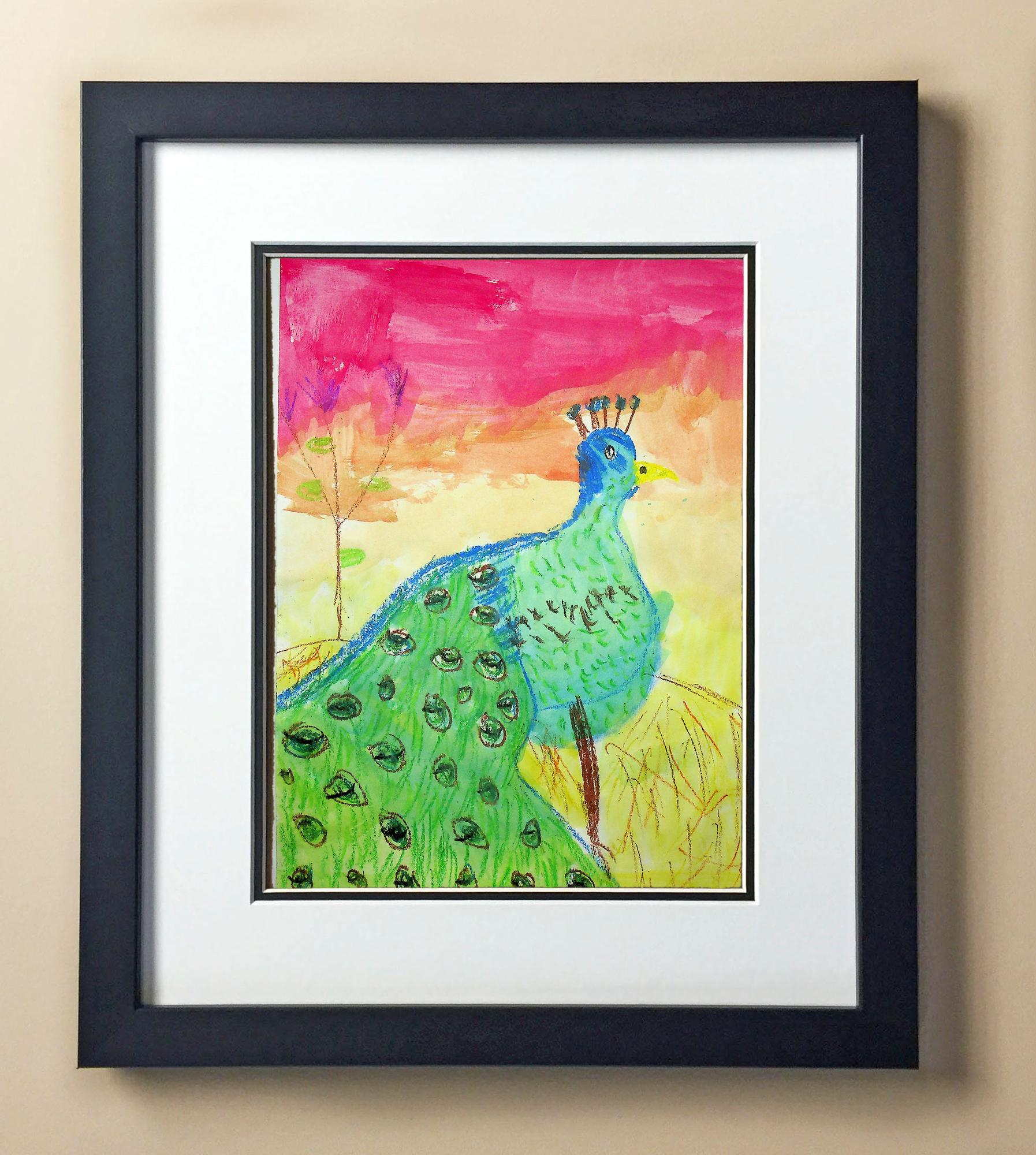 Included with the purchase is the Students Artwork, Frame, double matboard, shatter proof plexiglass, and a ready to hang backerboard with turnbuttons