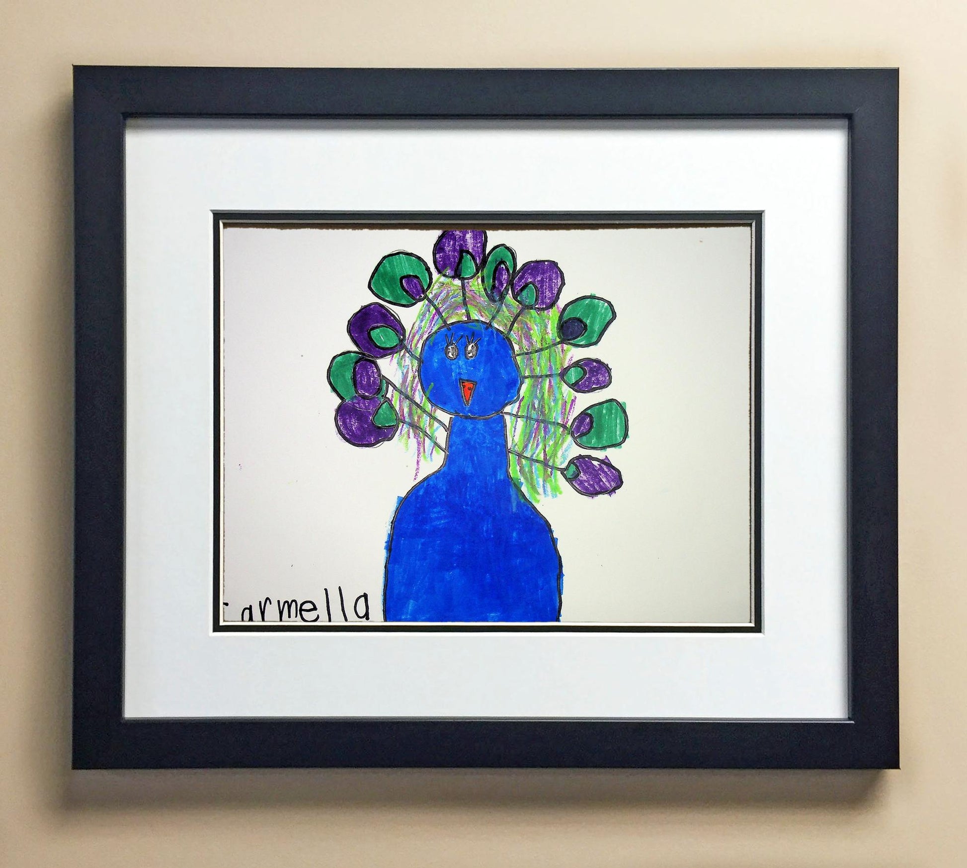 Included with the purchase is the Students Artwork, Frame, double matboard, shatter proof plexiglass, and a ready to hang backerboard with turnbuttons