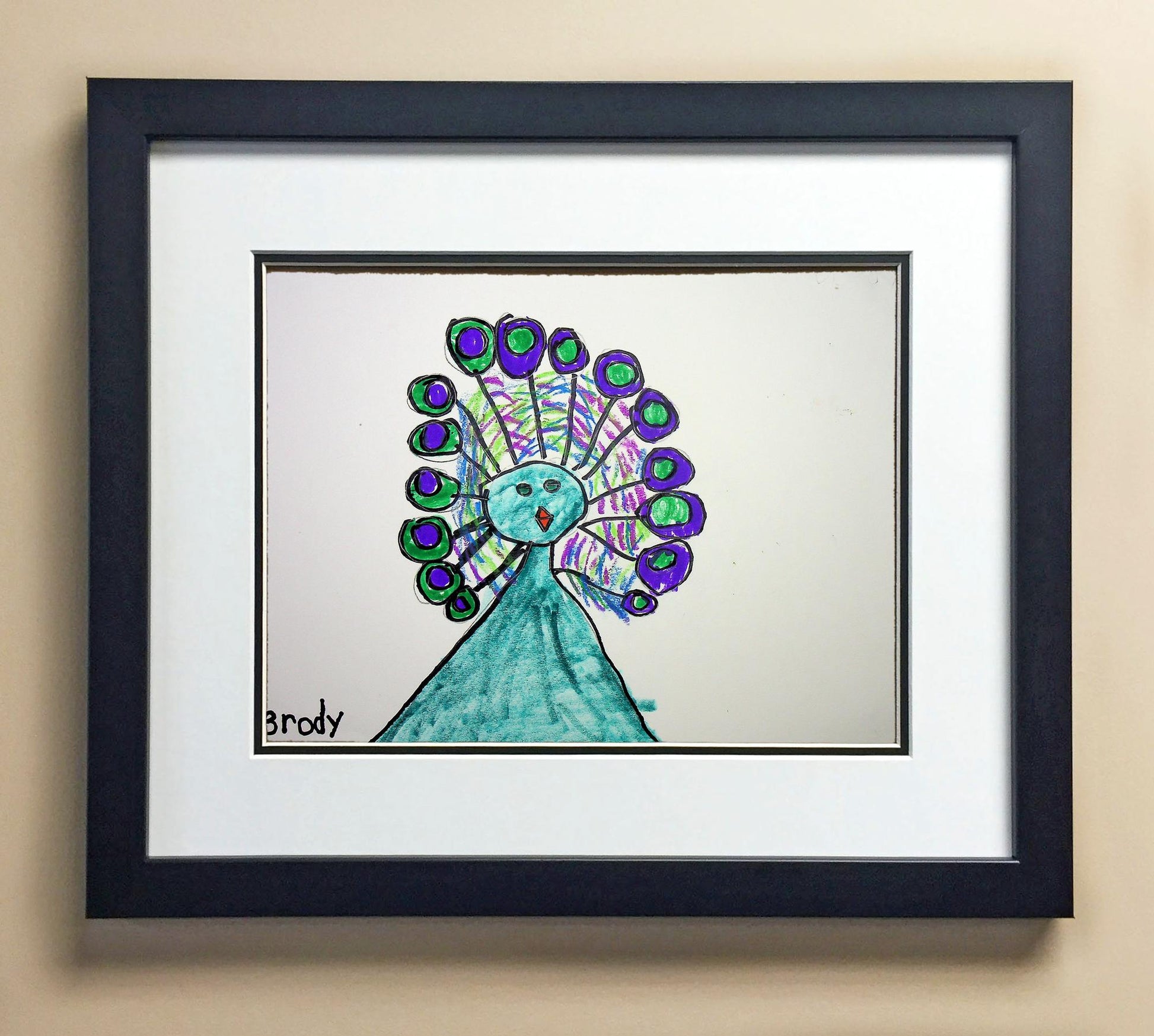 Included with the purchase is the Students Artwork, Frame, double matboard, shatter proof plexiglass, and a ready to hang backerboard with turnbuttons
