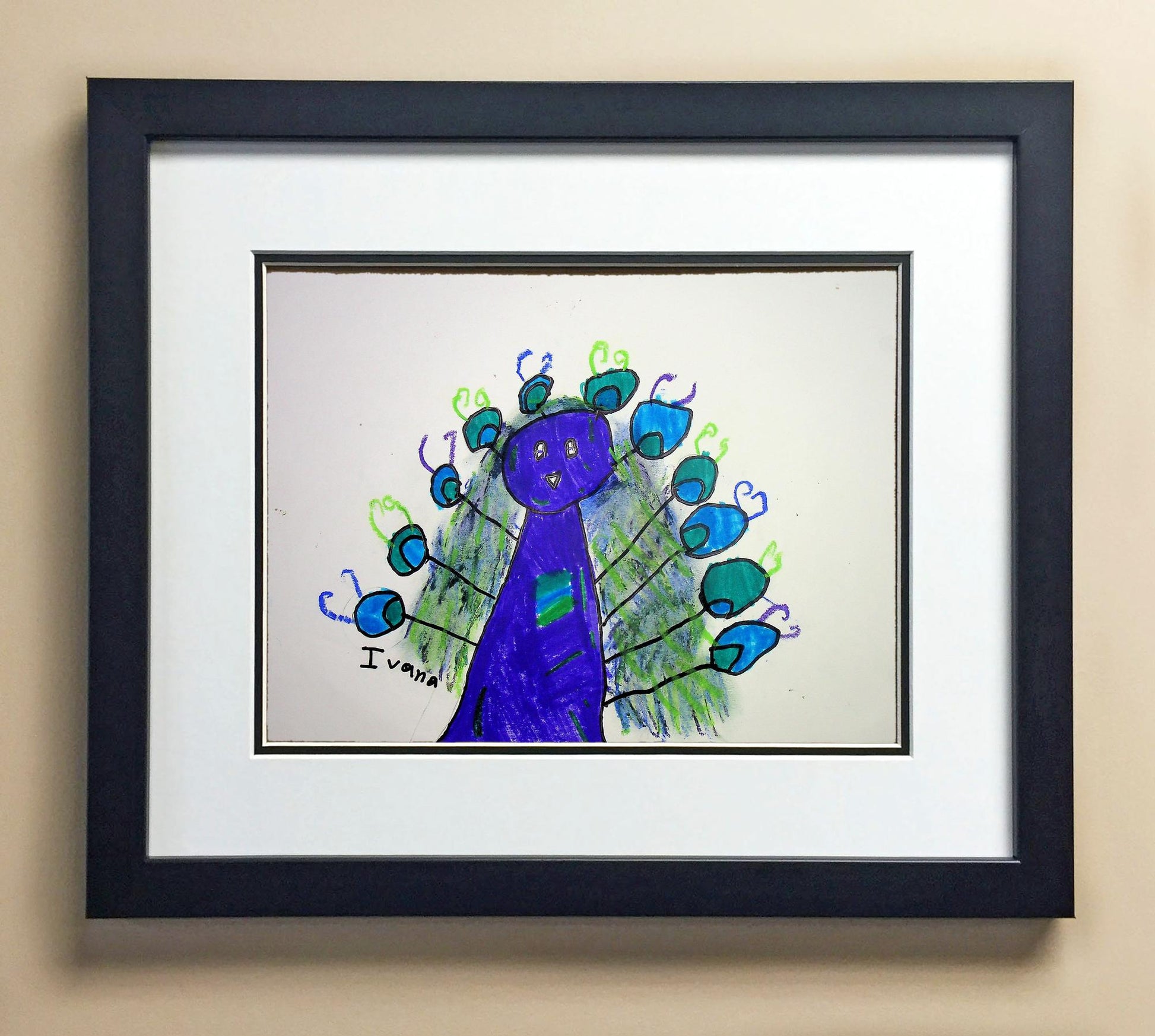 Included with the purchase is the Students Artwork, Frame, double matboard, shatter proof plexiglass, and a ready to hang backerboard with turnbuttons
