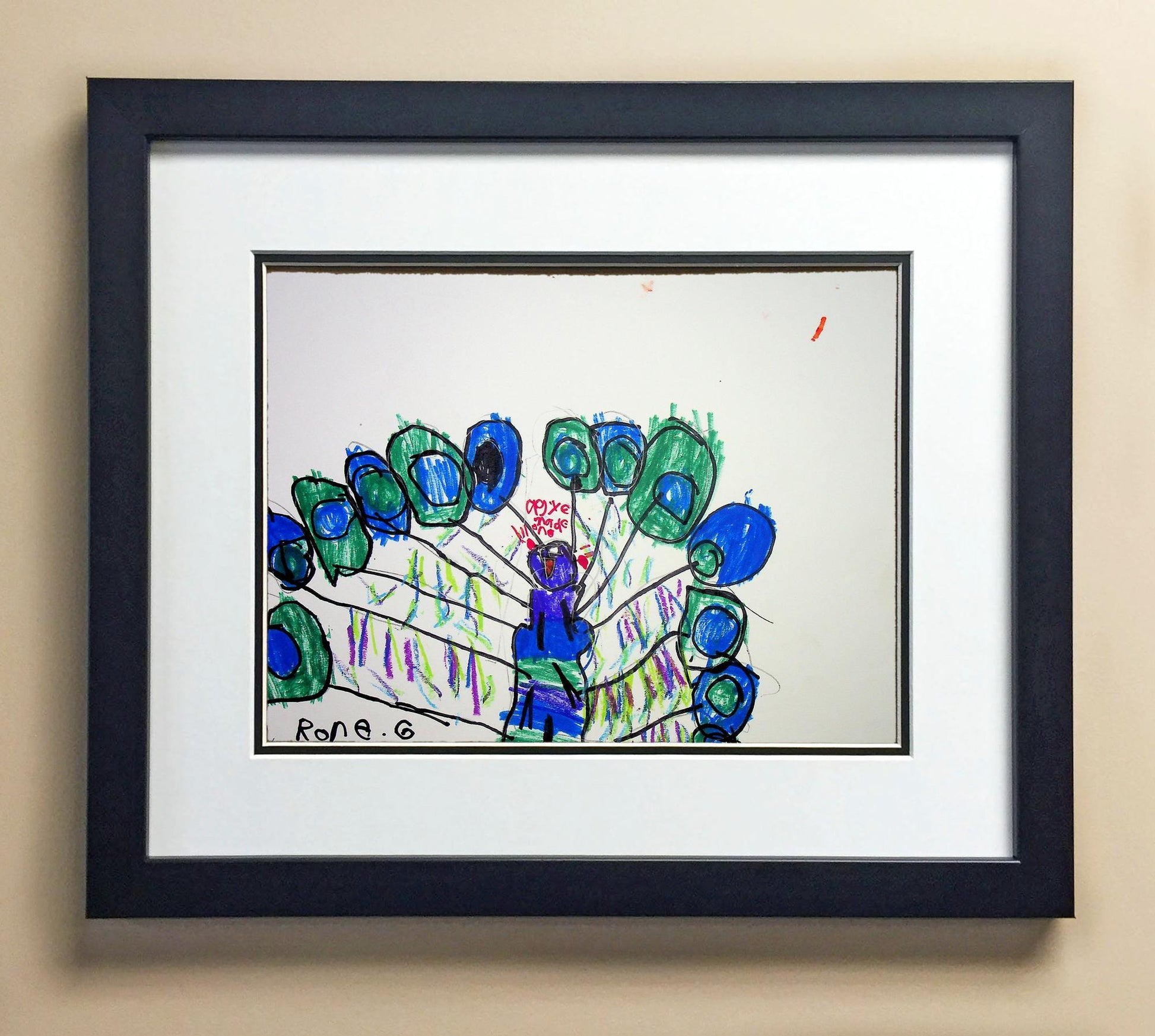 Included with the purchase is the Students Artwork, Frame, double matboard, shatter proof plexiglass, and a ready to hang backerboard with turnbuttons