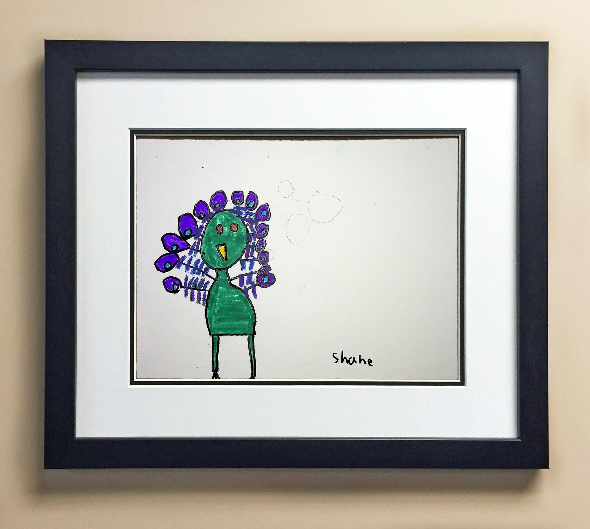 Included with the purchase is the Students Artwork, Frame, double matboard, shatter proof plexiglass, and a ready to hang backerboard with turnbuttons