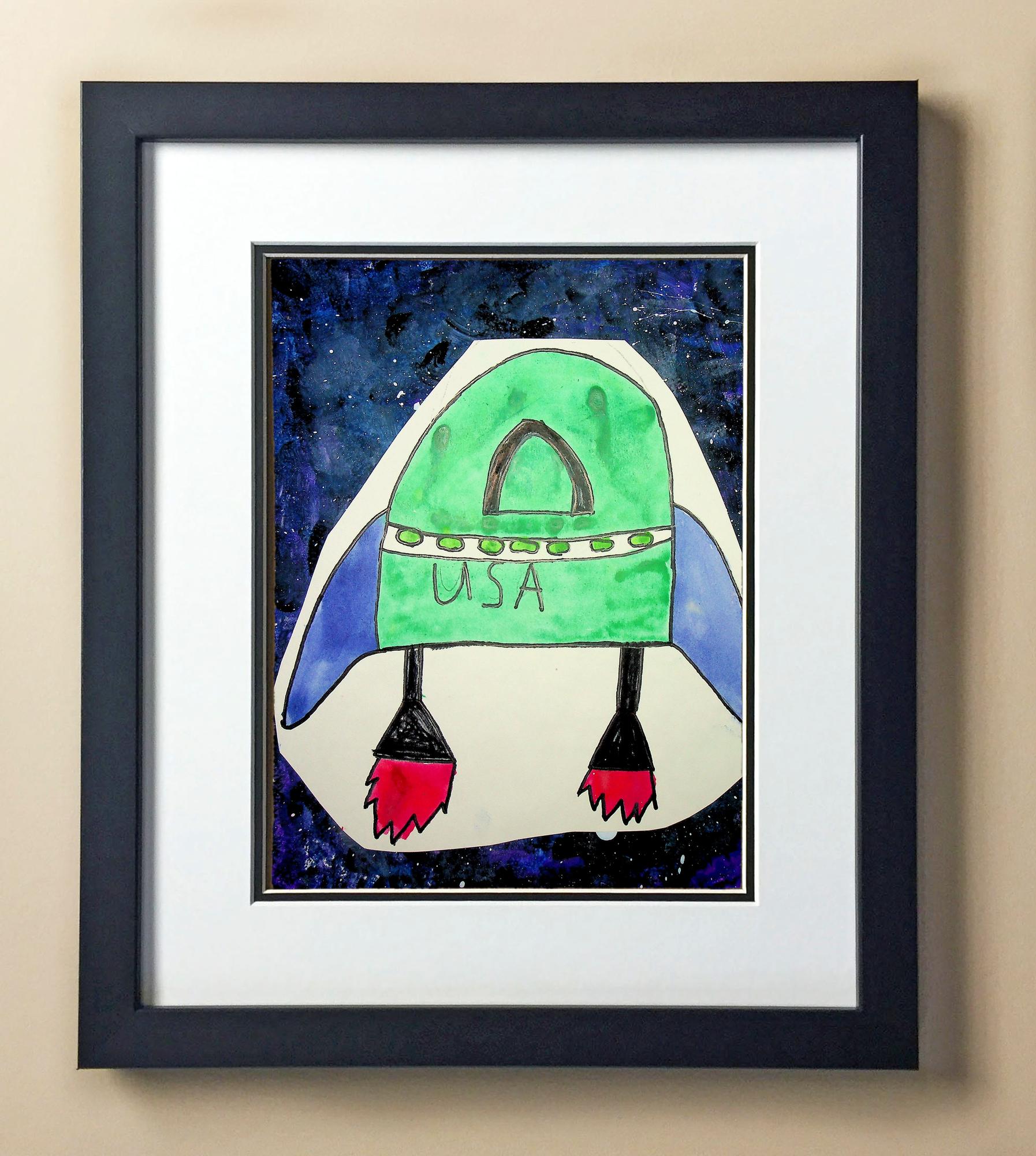 Included with the purchase is the Students Artwork, Frame, double matboard, shatter proof plexiglass, and a ready to hang backerboard with turnbuttons
