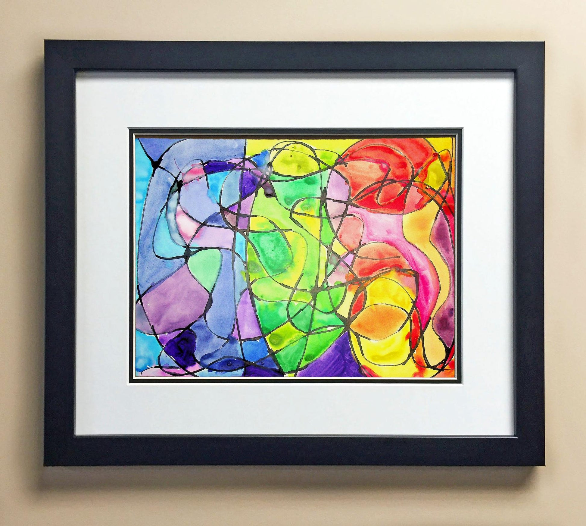 Included with the purchase is the Students Artwork, Frame, double matboard, shatter proof plexiglass, and a ready to hang backerboard with turnbuttons