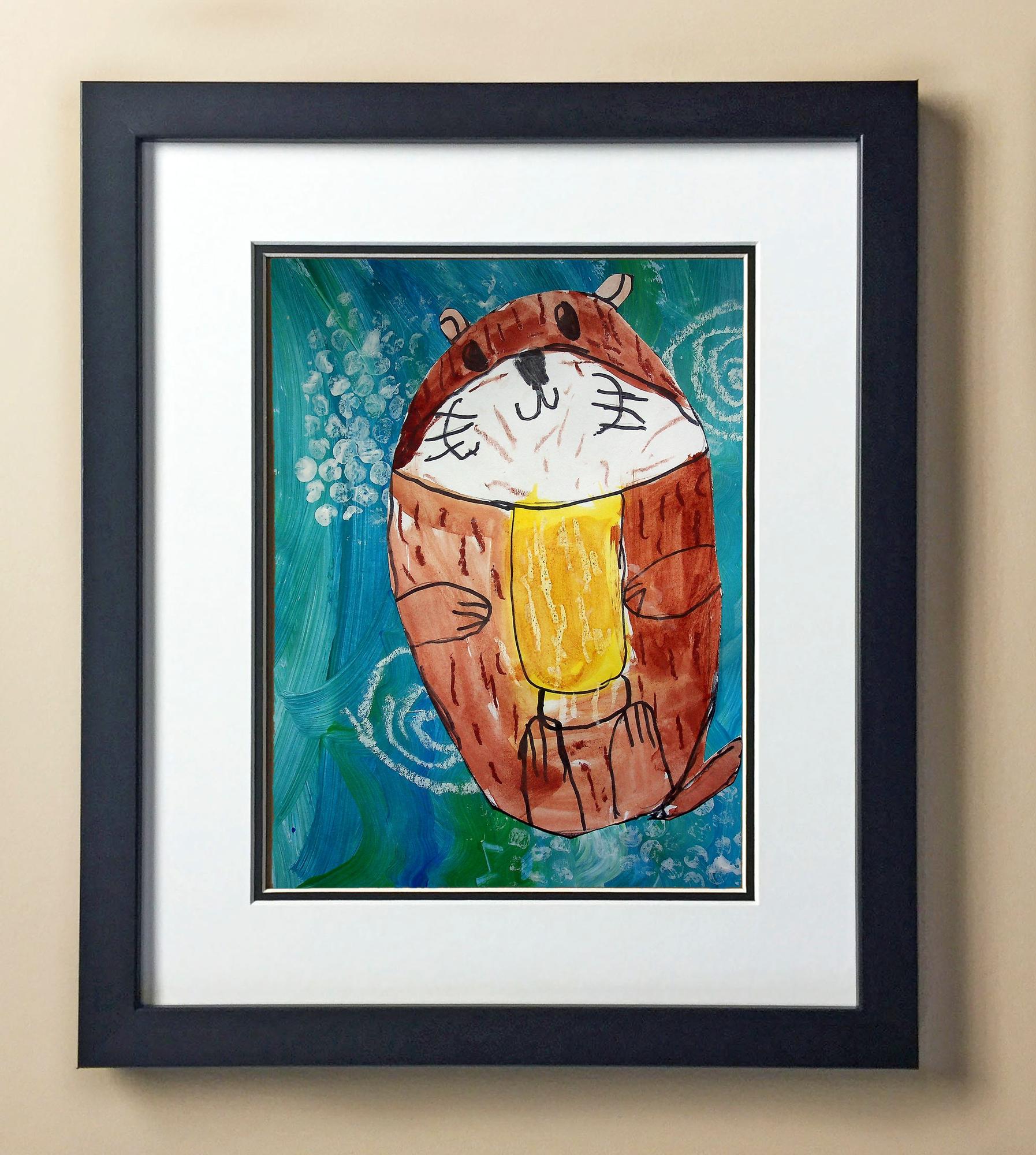 Included with the purchase is the Students Artwork, Frame, double matboard, shatter proof plexiglass, and a ready to hang backerboard with turnbuttons