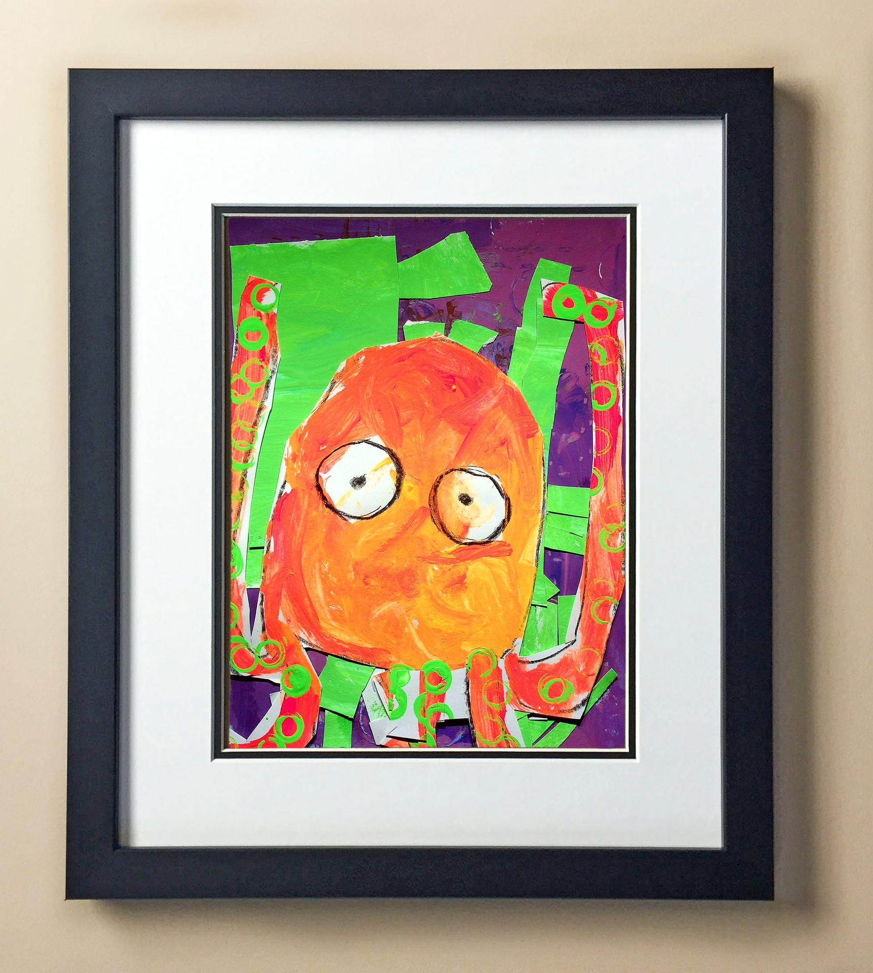 Included with the purchase is the Students Artwork, Frame, double matboard, shatter proof plexiglass, and a ready to hang backerboard with turnbuttons