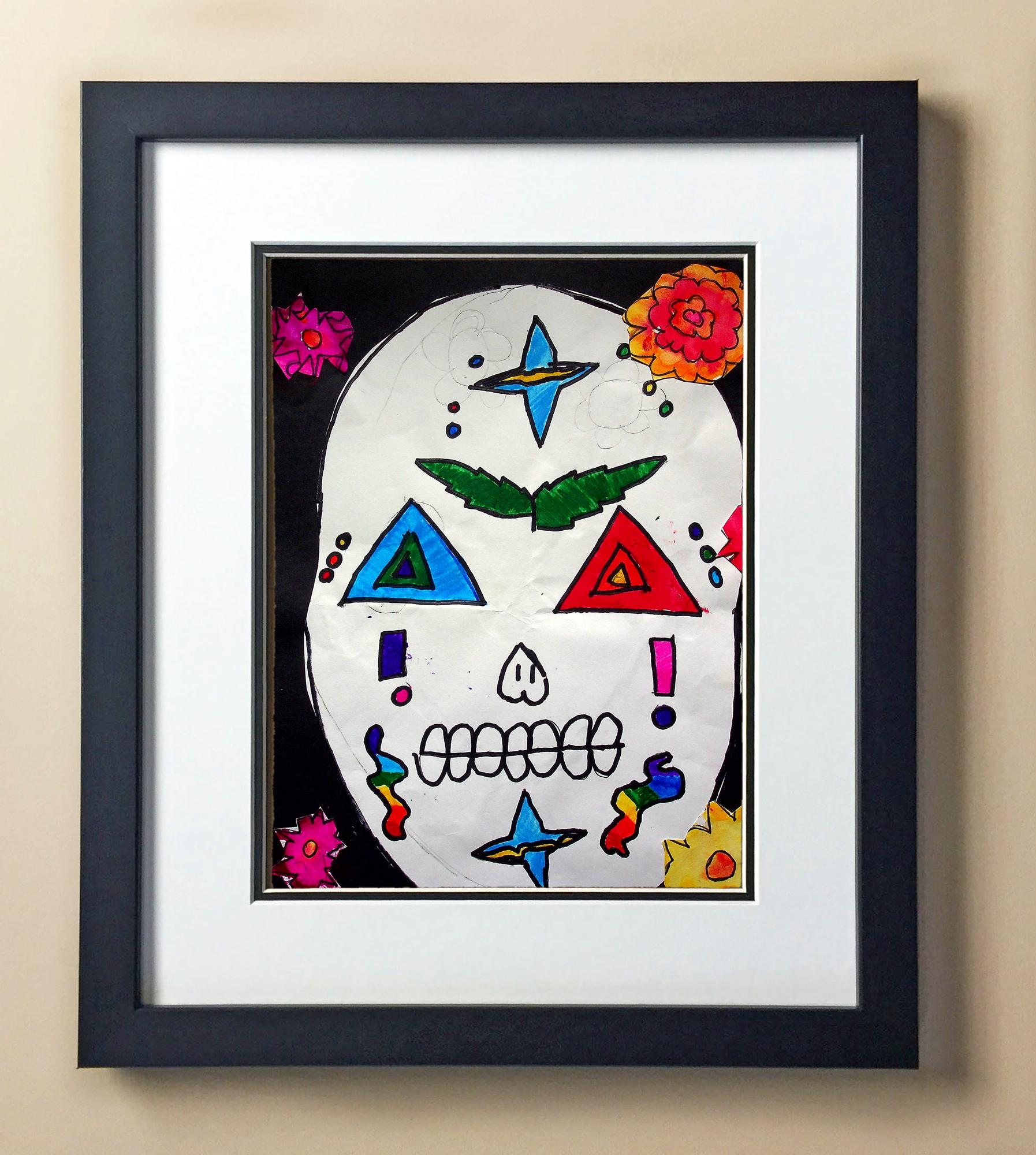 Included with the purchase is the Students Artwork, Frame, double matboard, shatter proof plexiglass, and a ready to hang backerboard with turnbuttons