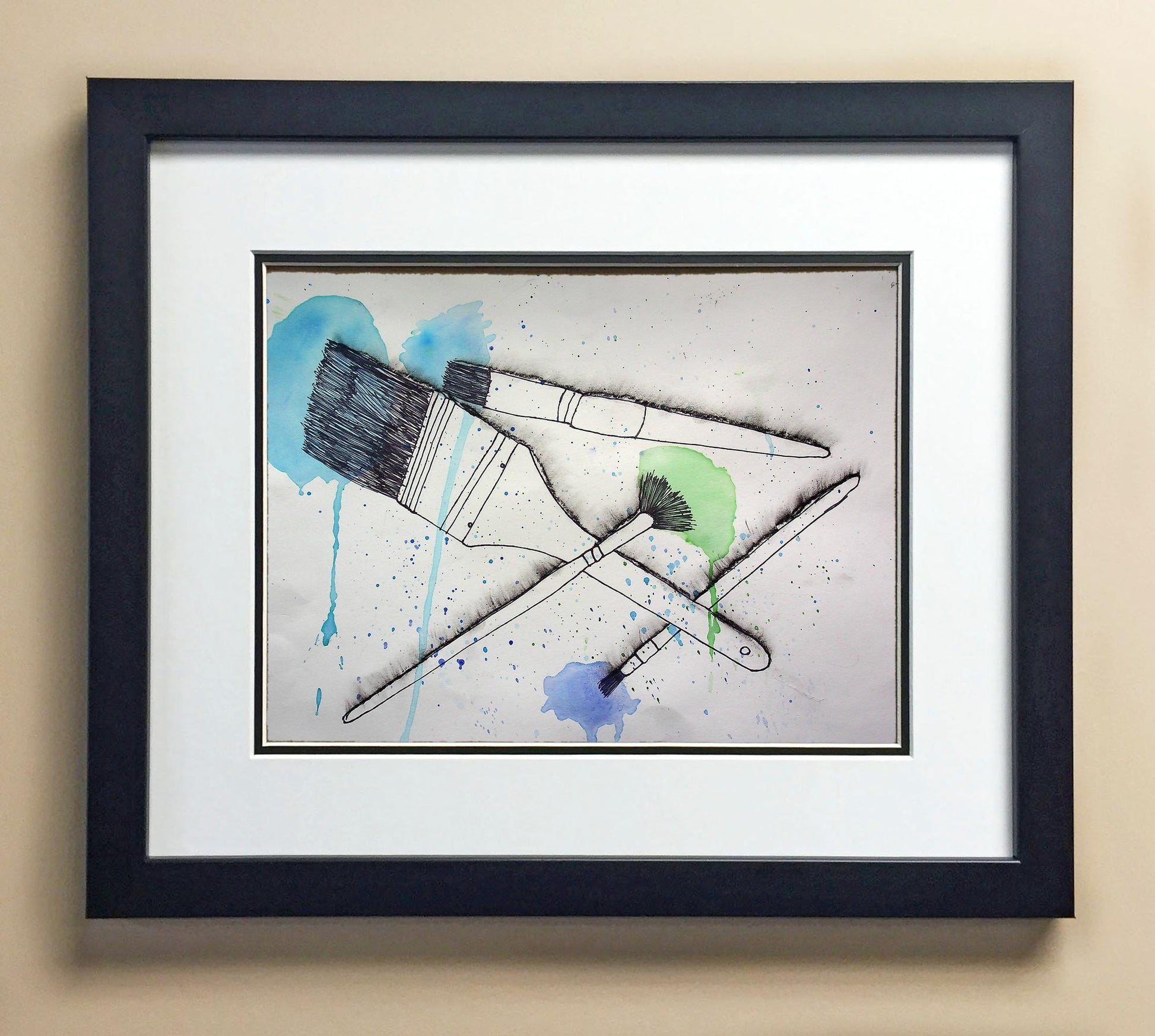 Included with the purchase is the Students Artwork, Frame, double matboard, shatter proof plexiglass, and a ready to hang backerboard with turnbuttons