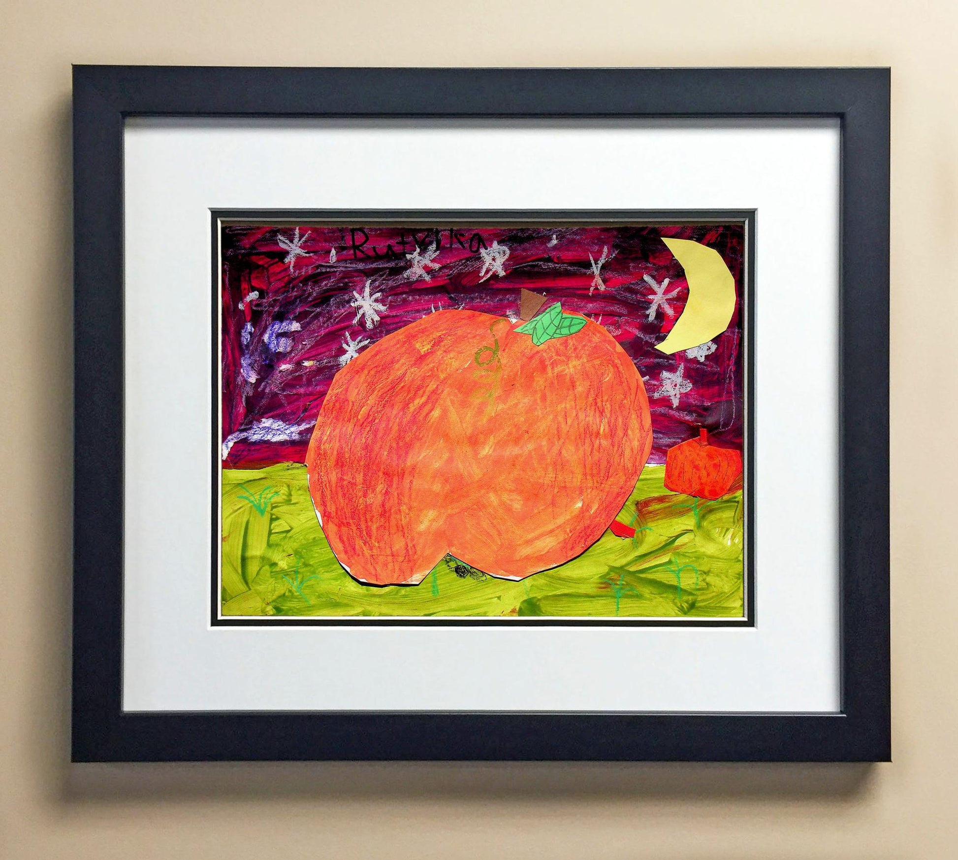 Included with the purchase is the Students Artwork, Frame, double matboard, shatter proof plexiglass, and a ready to hang backerboard with turnbuttons