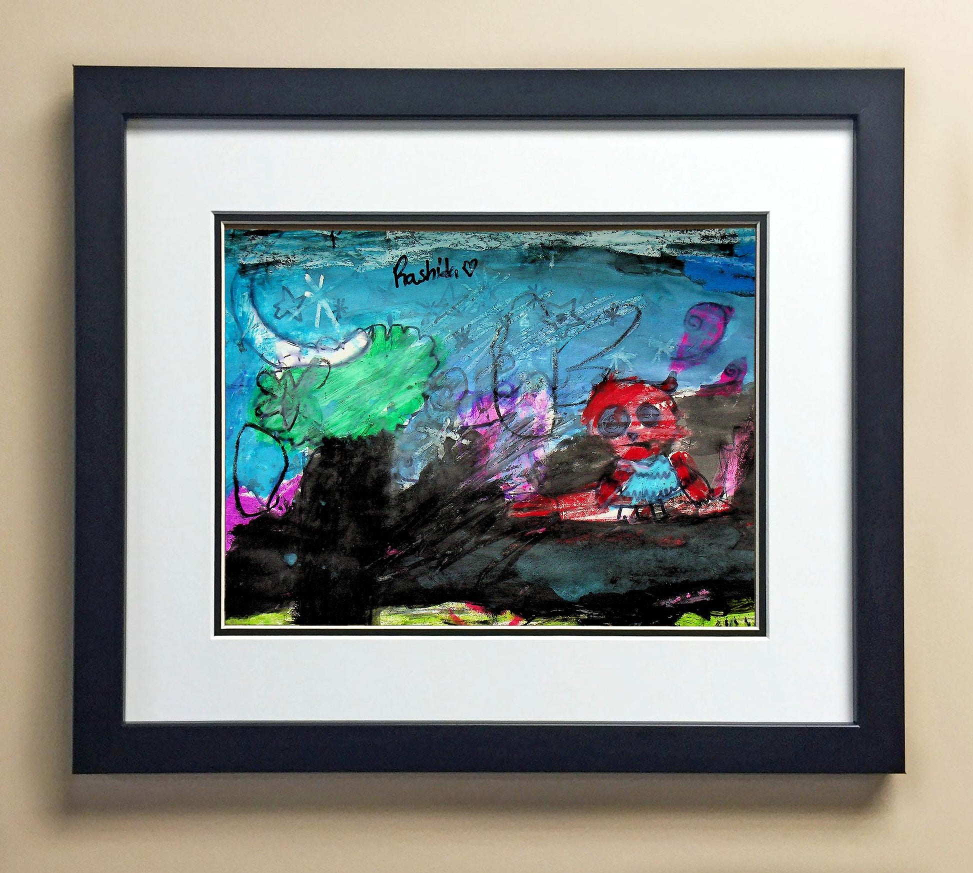 Included with the purchase is the Students Artwork, Frame, double matboard, shatter proof plexiglass, and a ready to hang backerboard with turnbuttons