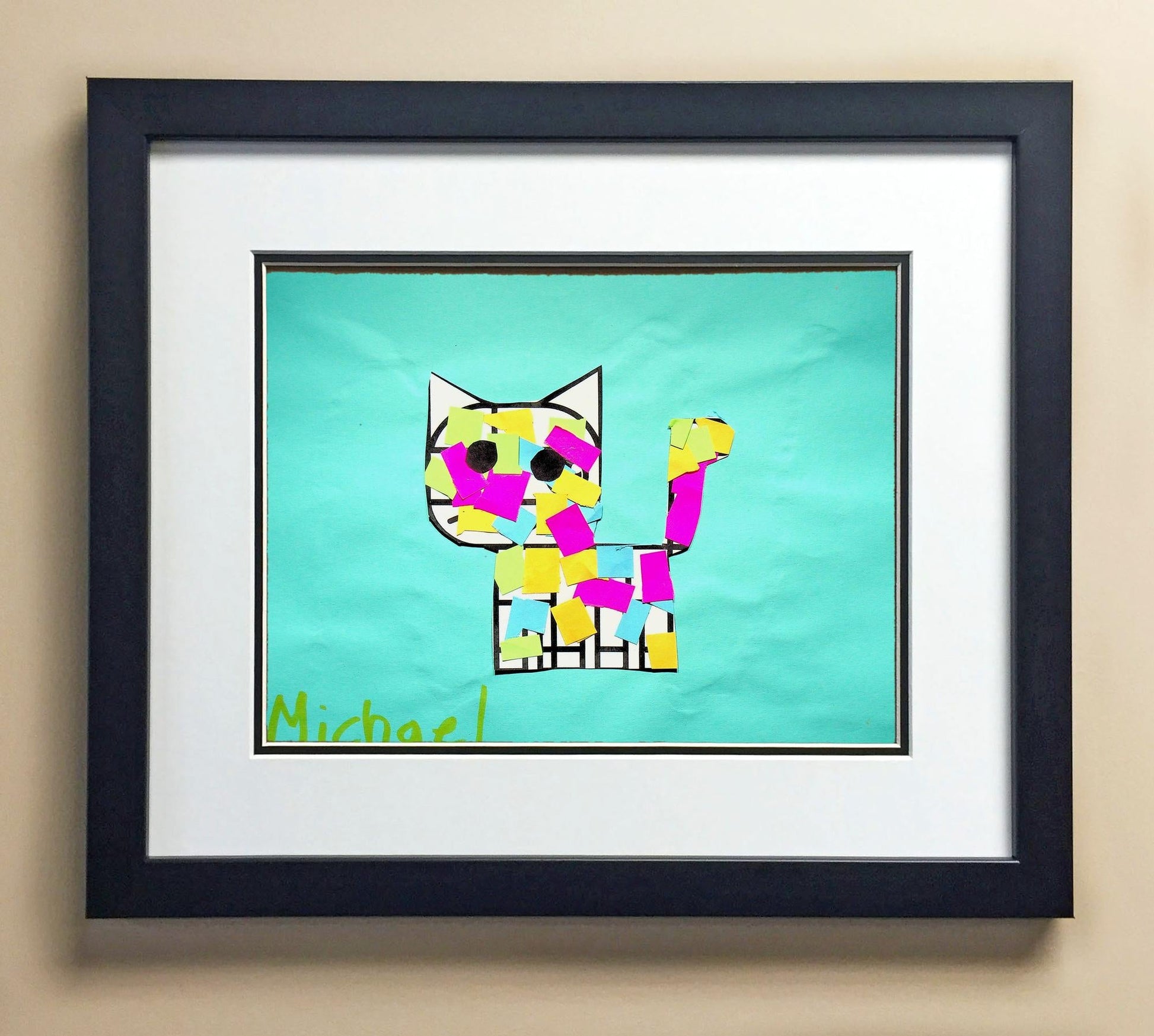 Included with the purchase is the Students Artwork, Frame, double matboard, shatter proof plexiglass, and a ready to hang backerboard with turnbuttons