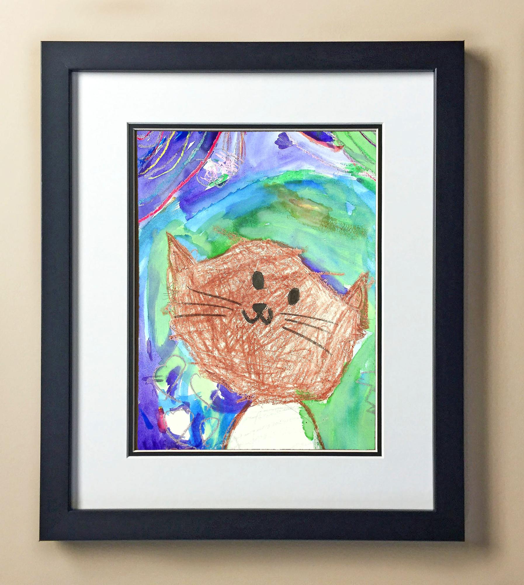 Included with the purchase is the Students Artwork, Frame, double matboard, shatter proof plexiglass, and a ready to hang backerboard with turnbuttons