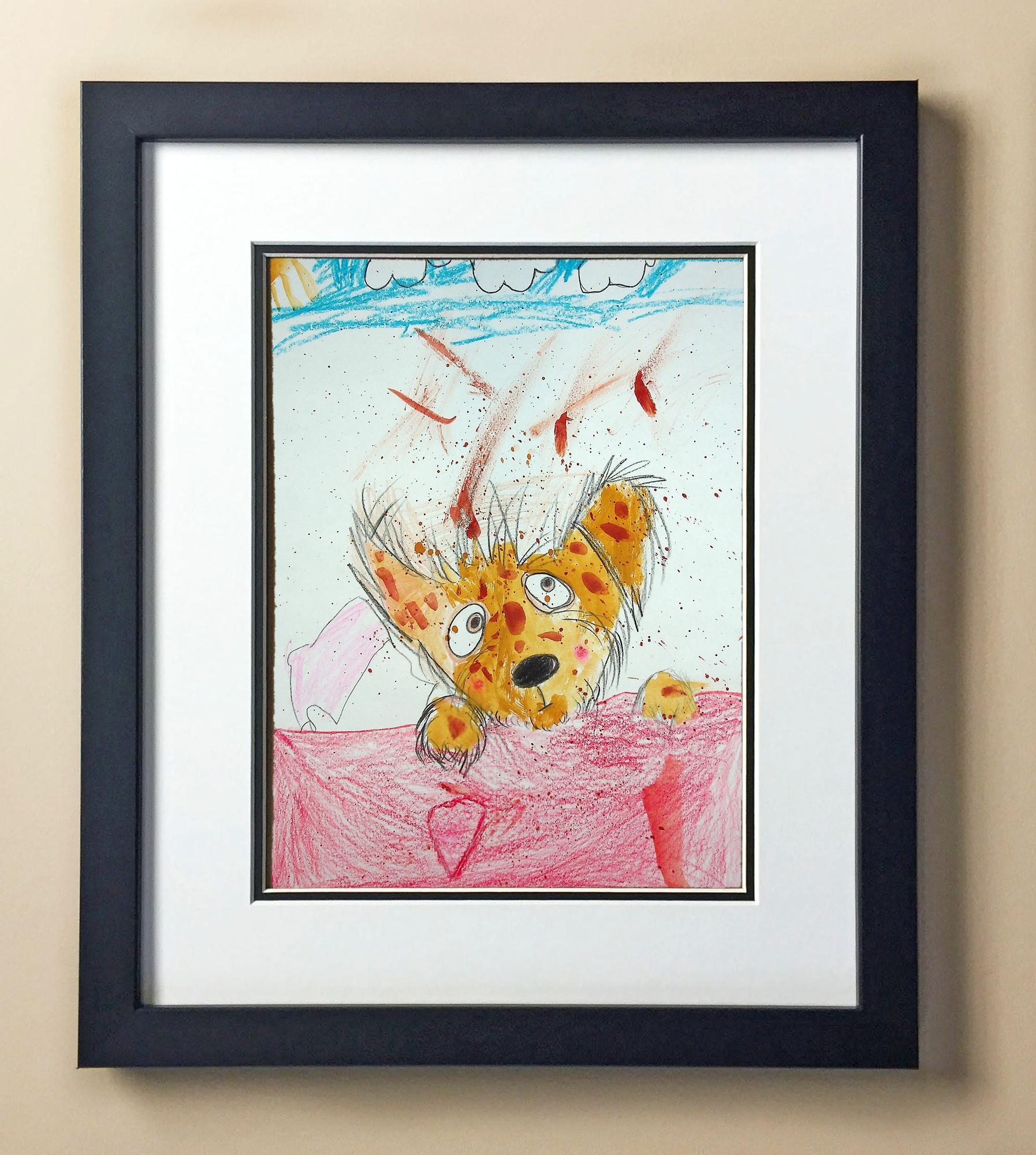 Included with the purchase is the Students Artwork, Frame, double matboard, shatter proof plexiglass, and a ready to hang backerboard with turnbuttons
