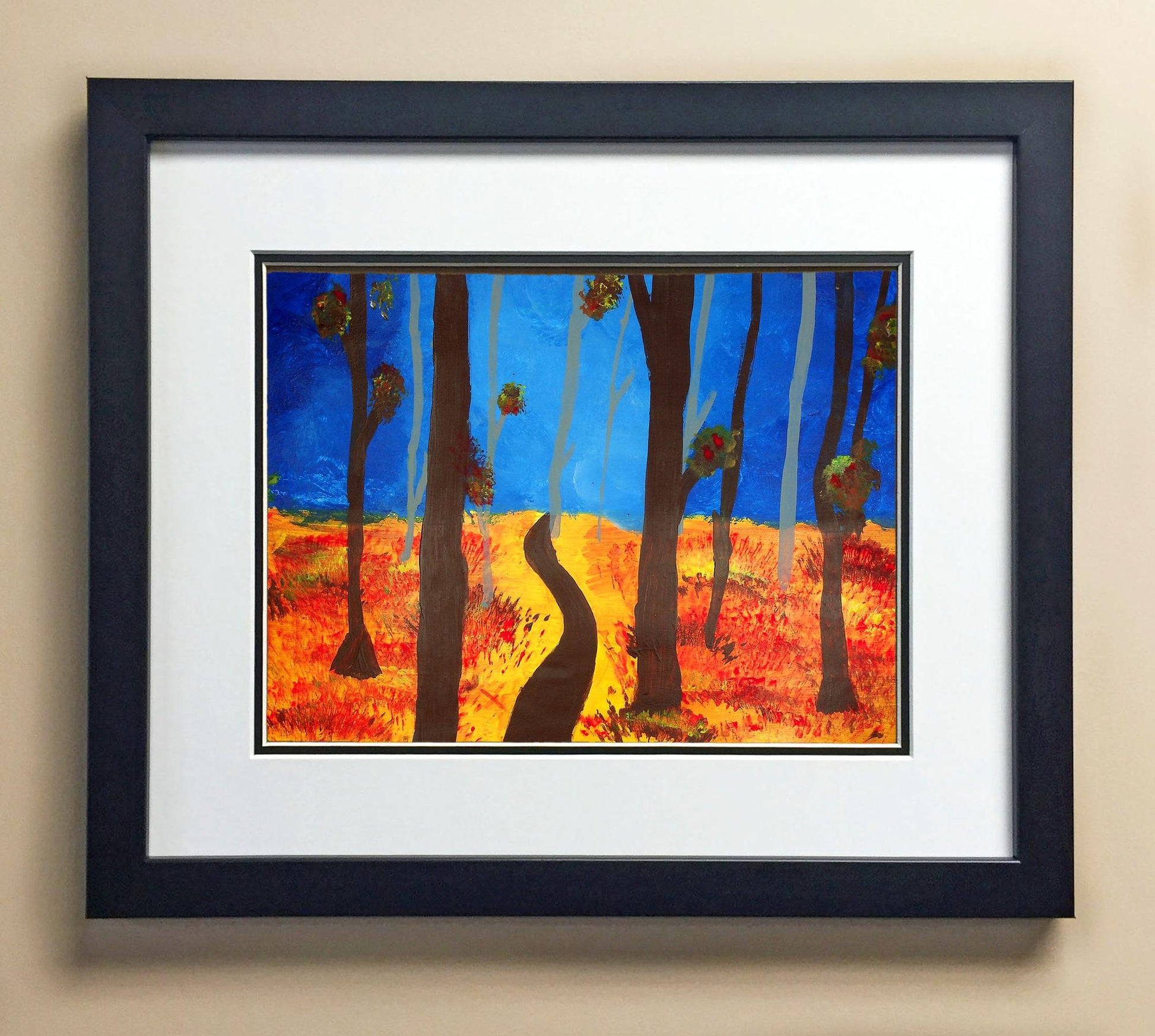 Included with the purchase is the Students Artwork, Frame, double matboard, shatter proof plexiglass, and a ready to hang backerboard with turnbuttons