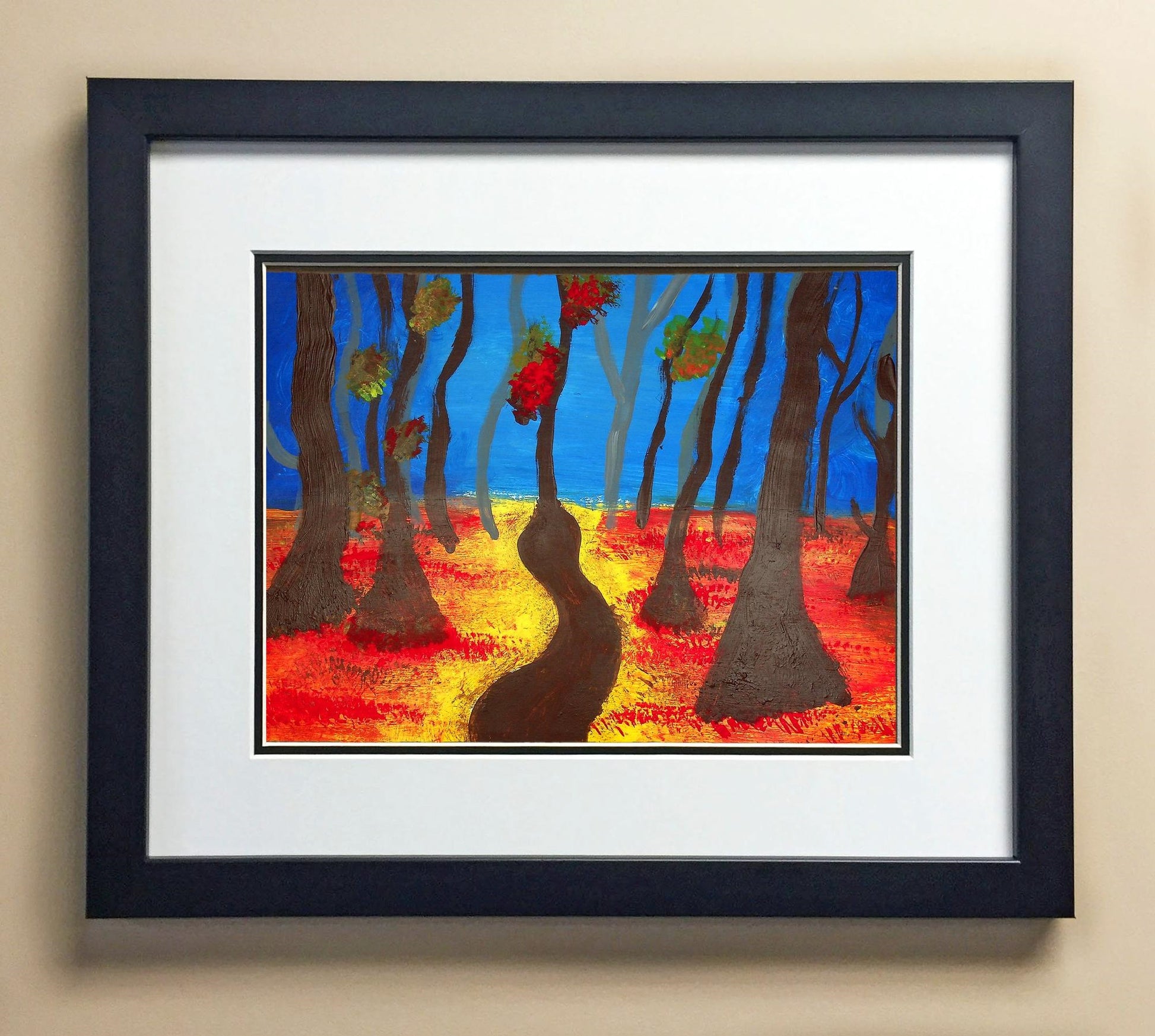 Included with the purchase is the Students Artwork, Frame, double matboard, shatter proof plexiglass, and a ready to hang backerboard with turnbuttons