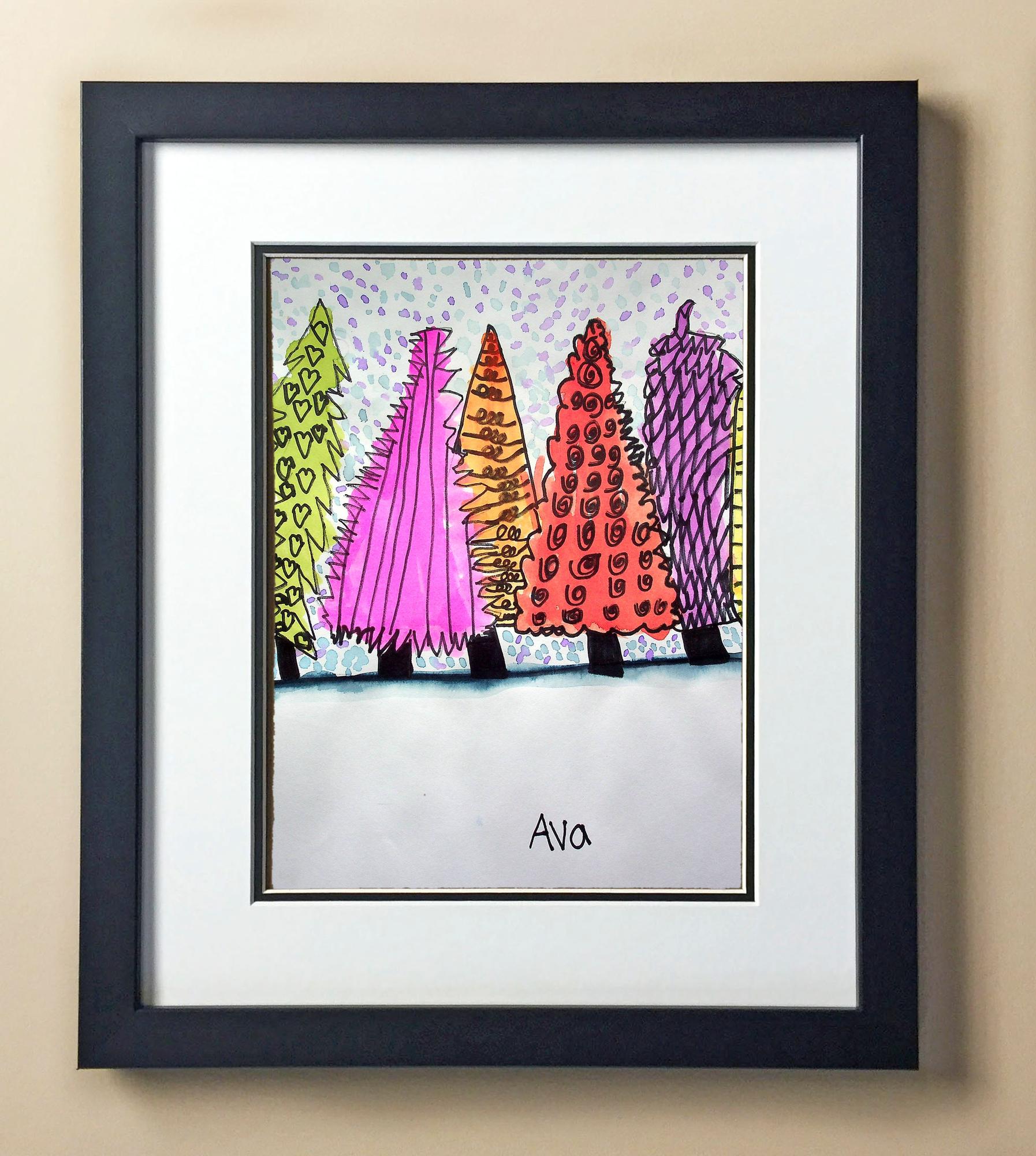 Included with the purchase is the Students Artwork, Frame, double matboard, shatter proof plexiglass, and a ready to hang backerboard with turnbuttons
