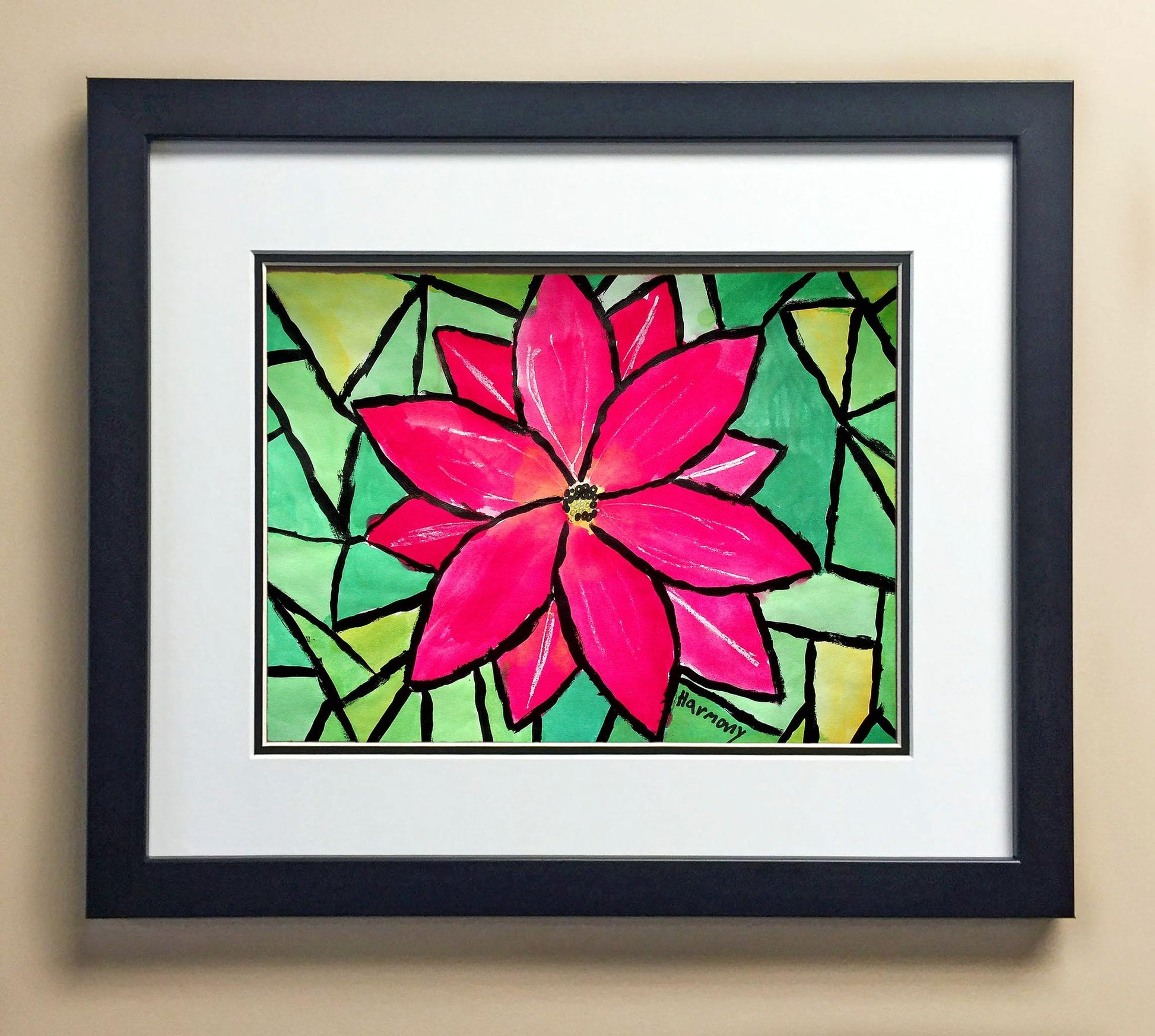 Included with the purchase is the Students Artwork, Frame, double matboard, shatter proof plexiglass, and a ready to hang backerboard with turnbuttons